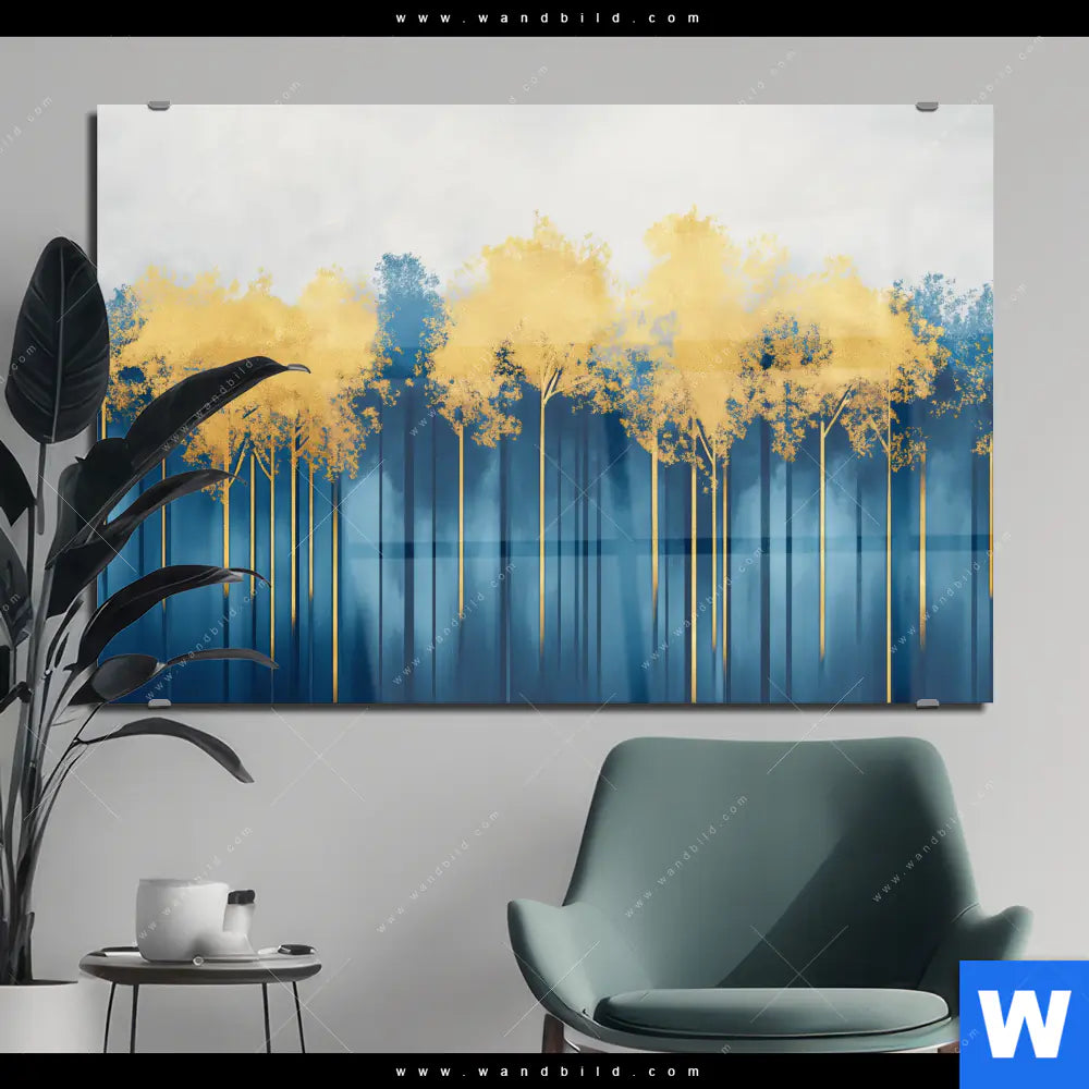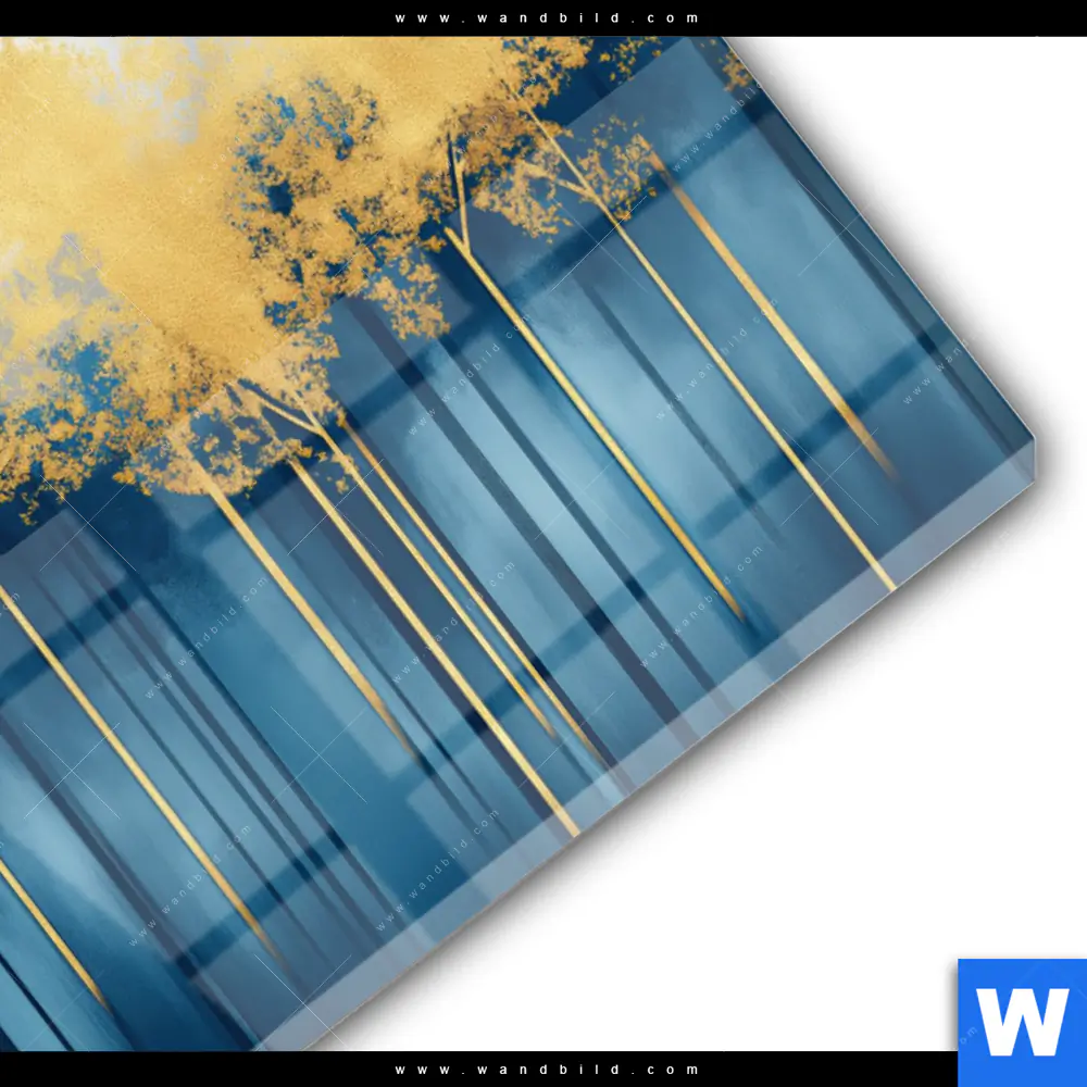 Acrylglasbild | Abstrakter Wald - Blau & Gold | Querformat