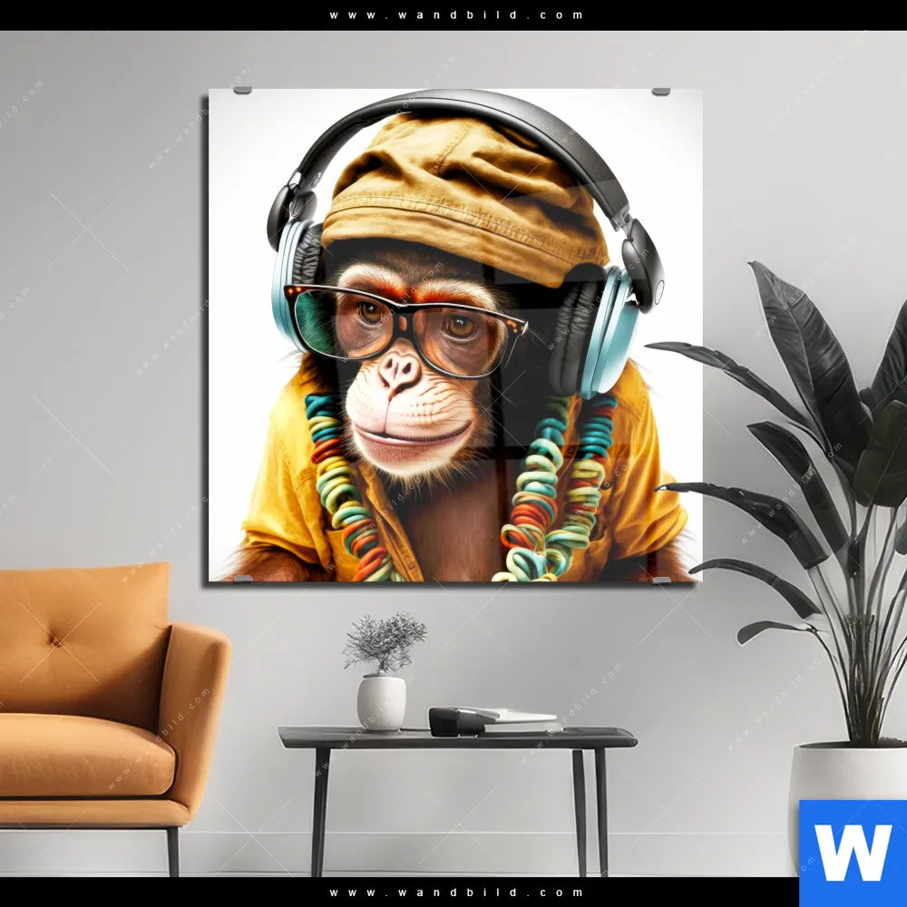Acrylglasbild | Affe mit Kopfhörern & Brille | Quadrat
