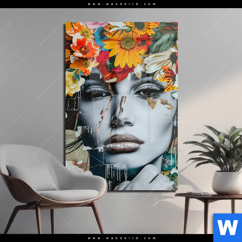 Acrylglasbild | Angelina - Frau mit Blumen im Haar | Hochformat