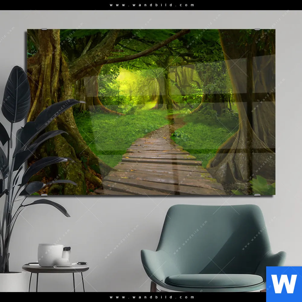 Landschaften, Wald - Bäume Glasbild inkl. vormontiertem Rückrahmen
