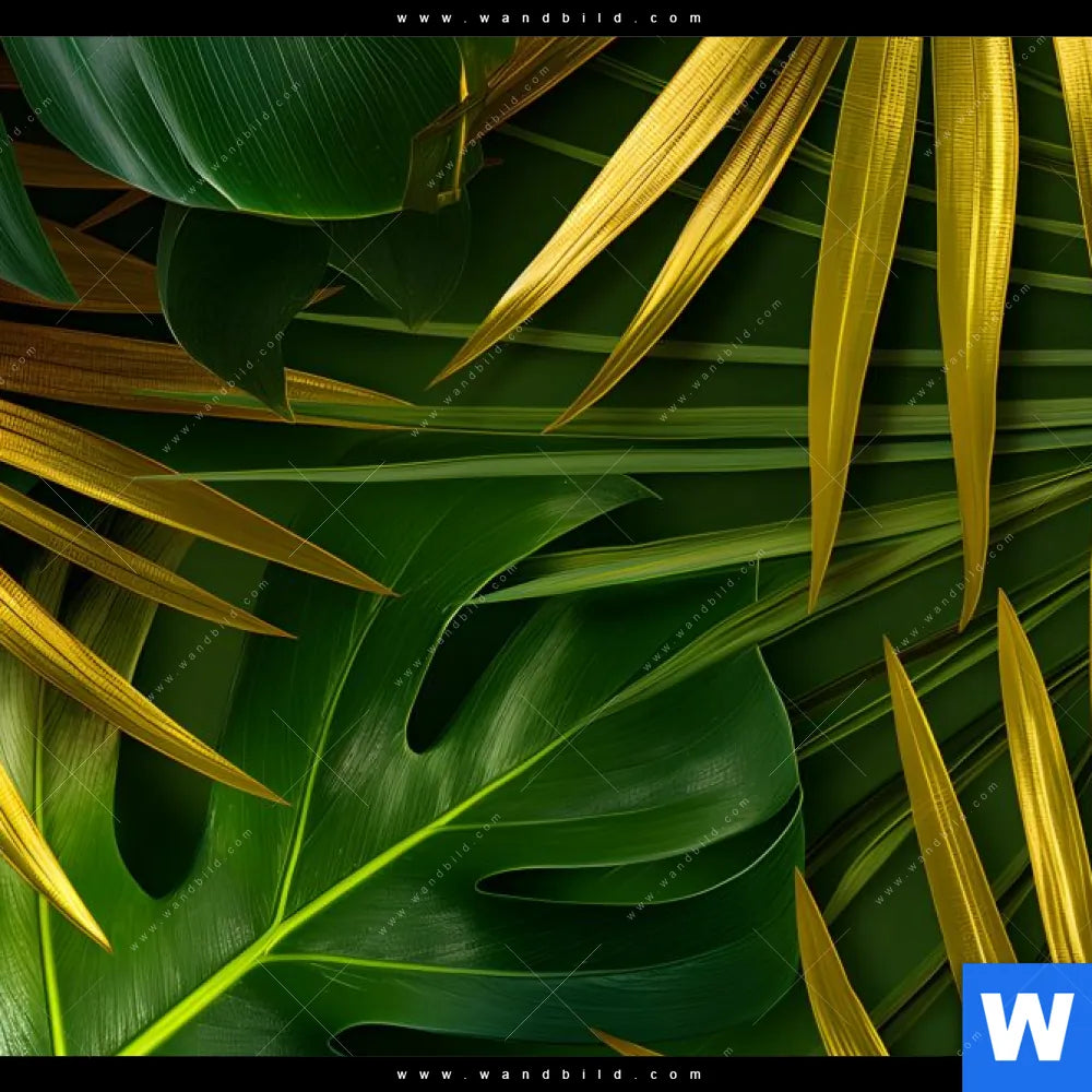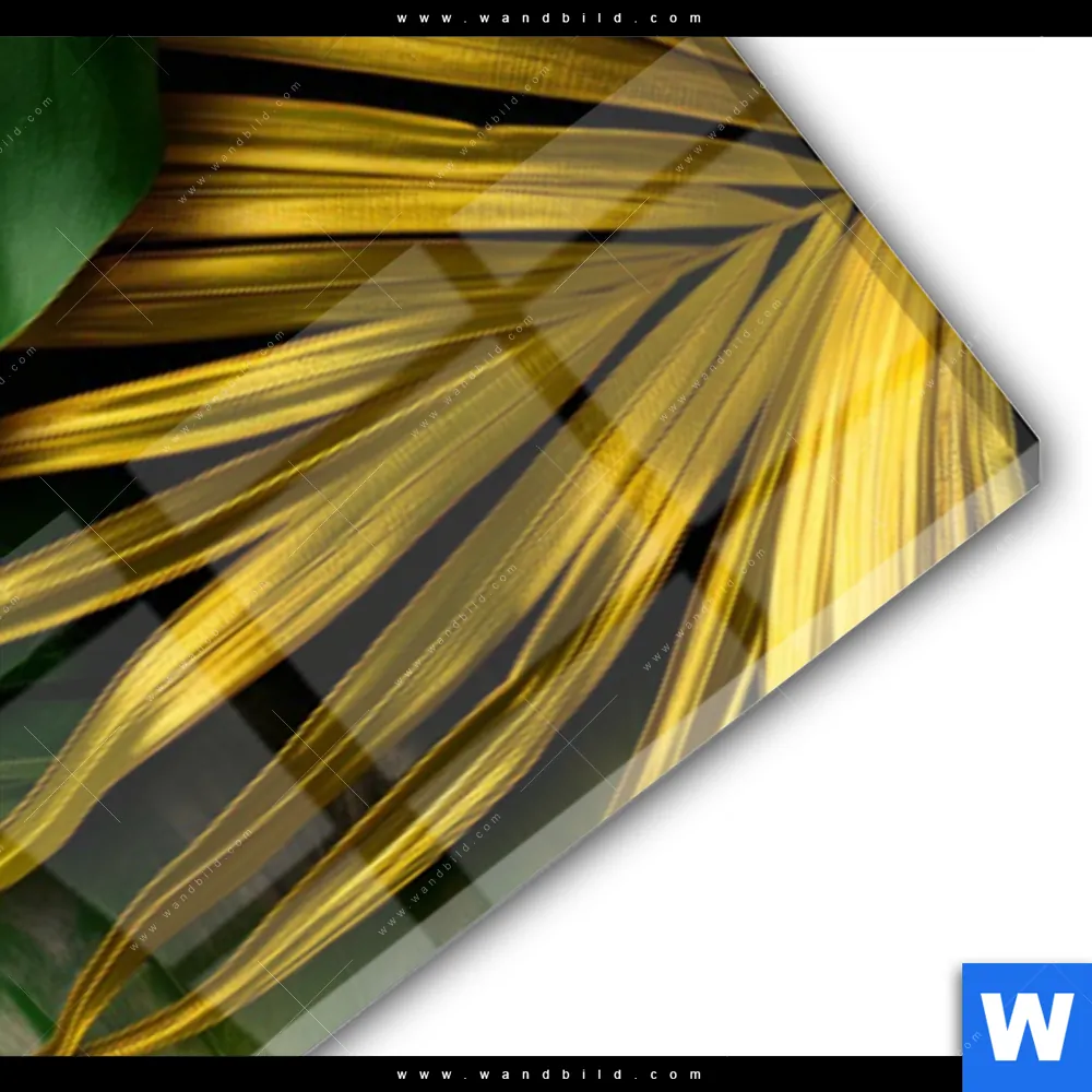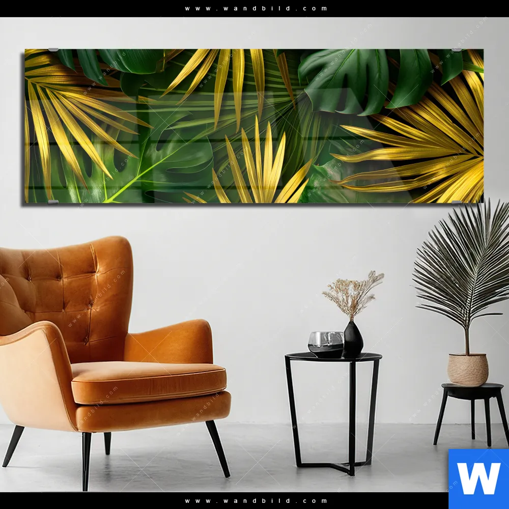 Acrylglasbild | Blätter Gold Grün | Panorama
