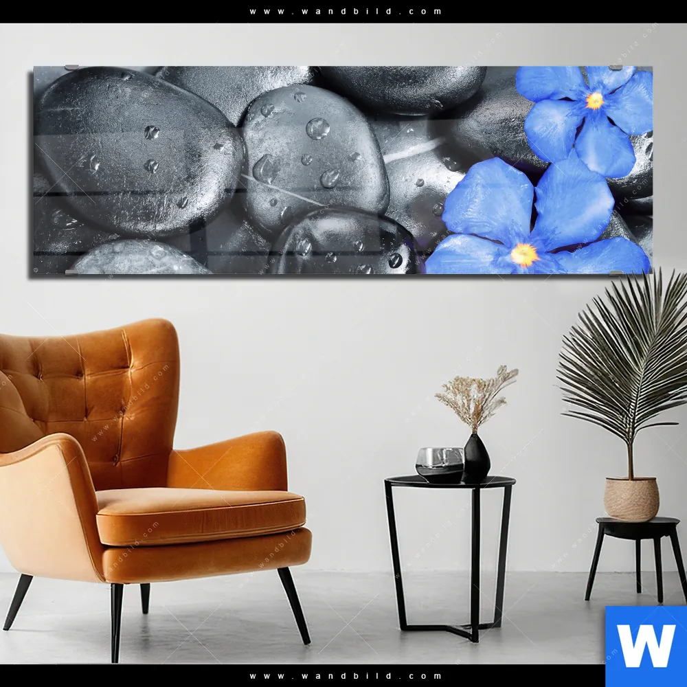 Acrylglasbild | Blaue Blume & Graue Steine | Panorama