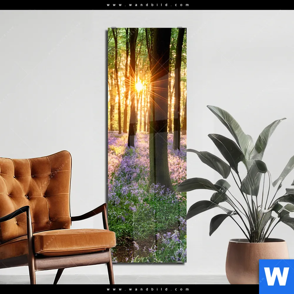 Acrylglasbild | Blühender Wald bei Sonnenaufgang | Schmal