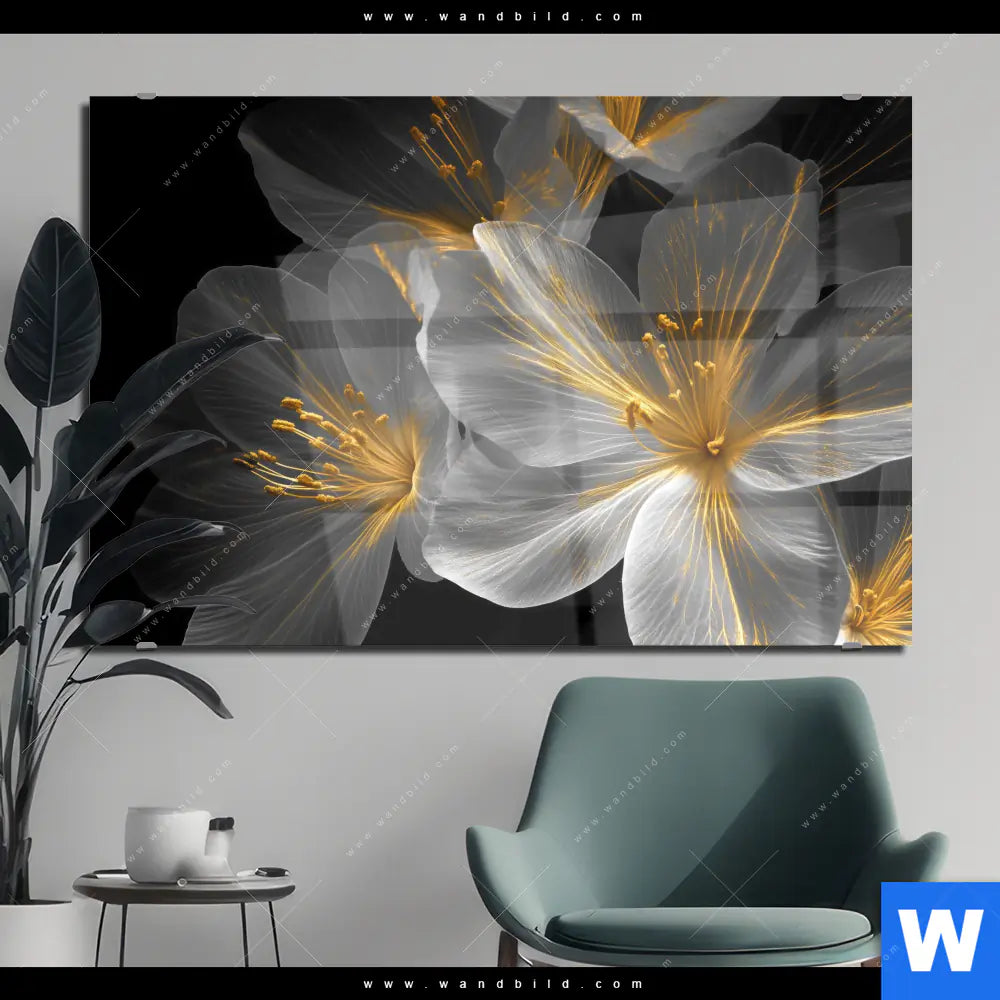 Acrylglasbild | Blüten Gold & Weiß | Querformat