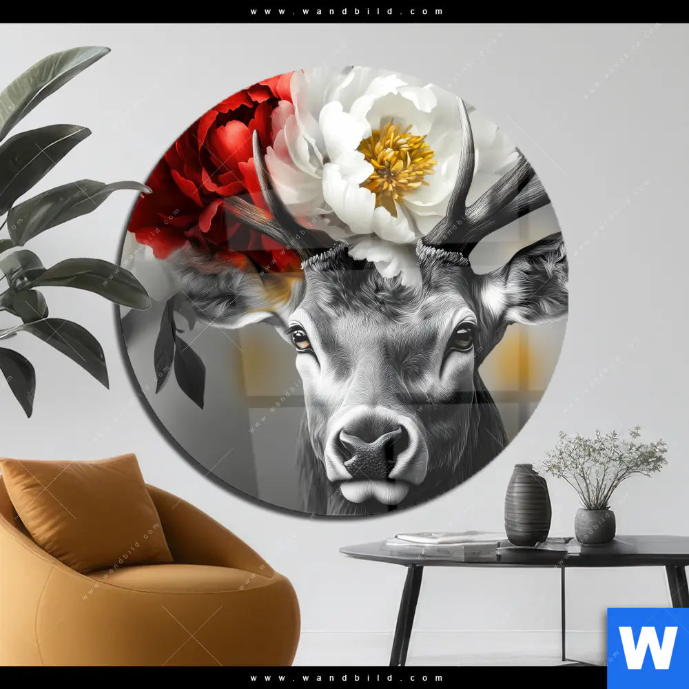 Acrylglasbild | Blütenpracht am Hirschgeweih | Rund