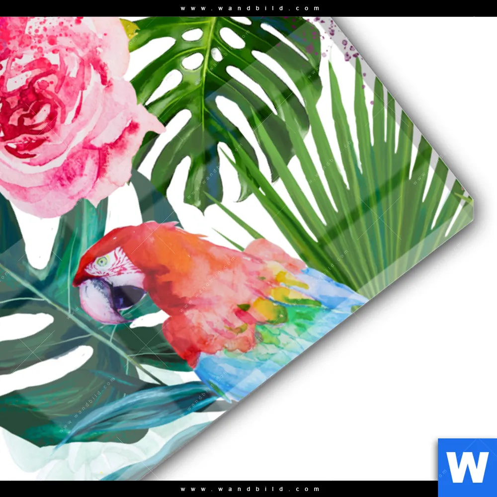 Acrylglasbild | Blumen & Papageien Aquarell | Querformat