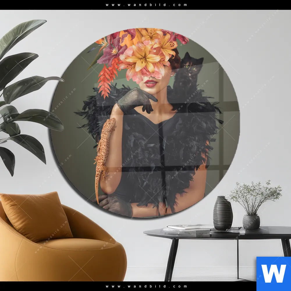 Acrylglasbild | Blumenportrait einer Frau | Rund