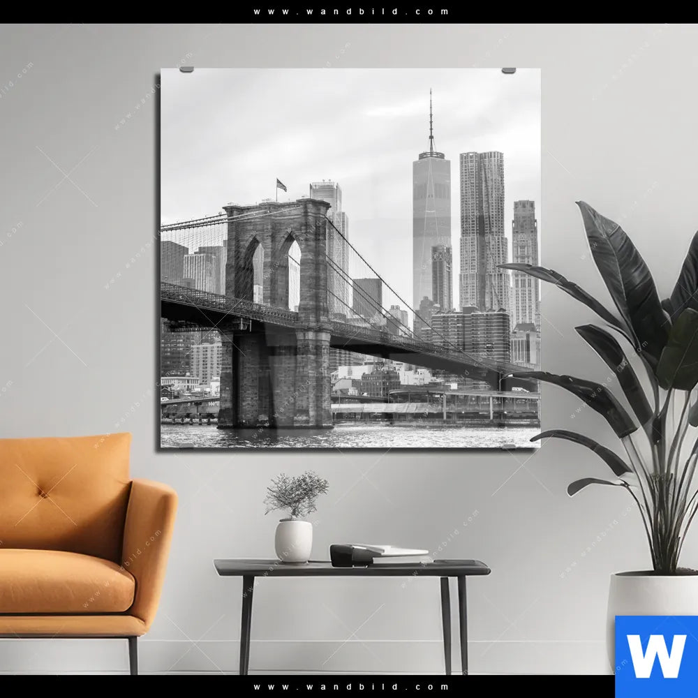 Acrylglasbild | Brooklyn Bridge Schwarzweiß | Quadrat
