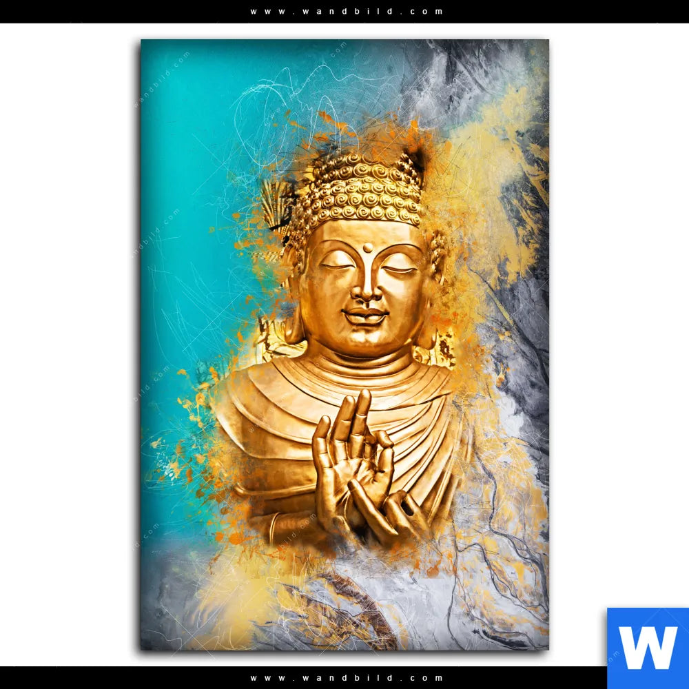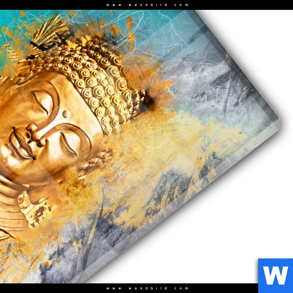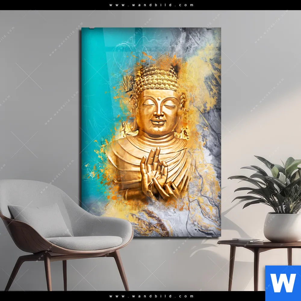 Acrylglasbild | Buddha Gold & Türkis | Hochformat