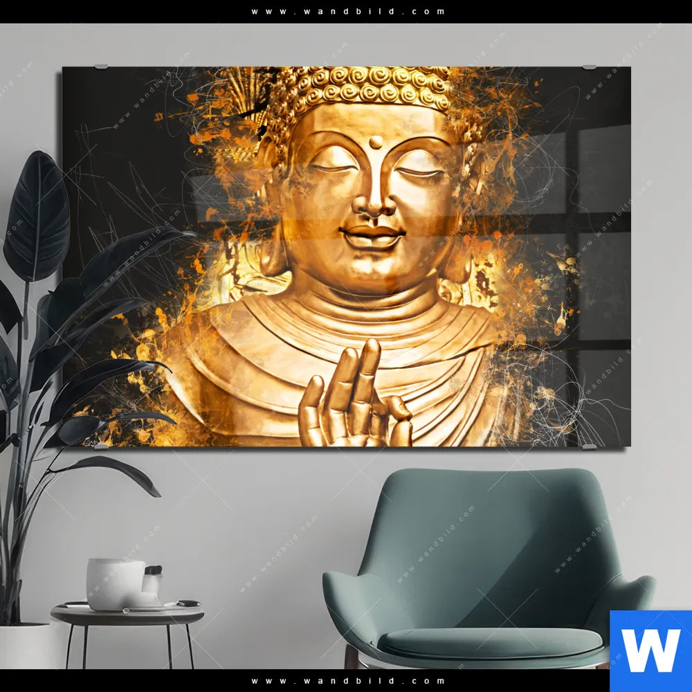 Acrylglasbild | Buddha Golden Splash | Querformat