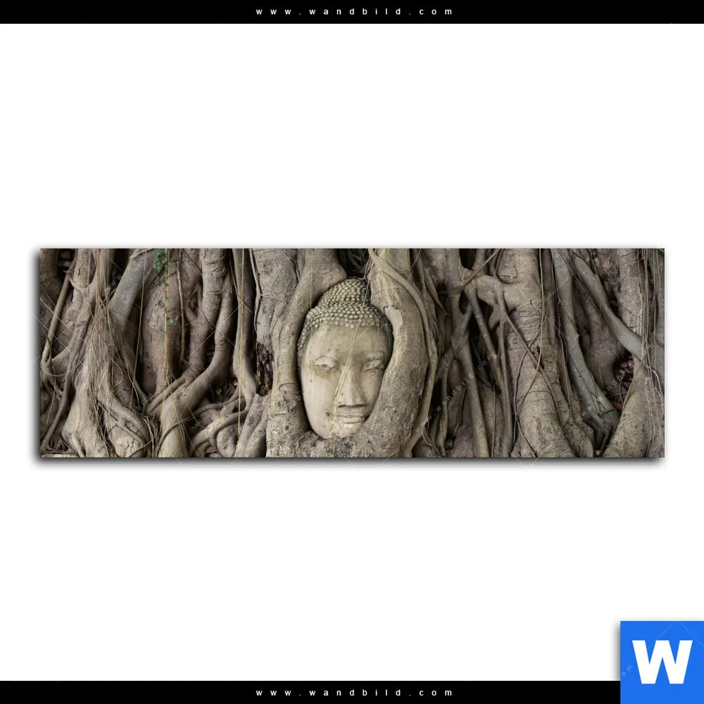Acrylglasbild | Buddha in Baumwurzeln | Panorama