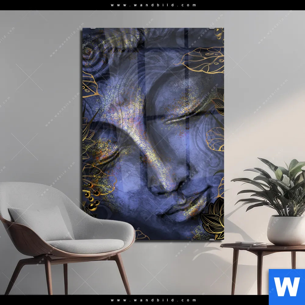 Acrylglasbild | Buddha in Gold & Blau | Hochformat