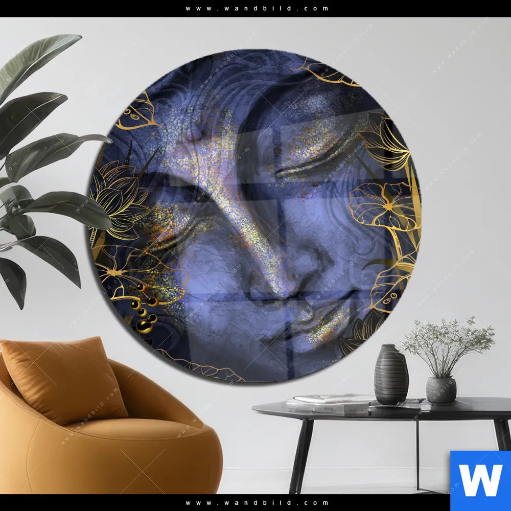 Acrylglasbild | Buddha in Gold & Blau | Rund