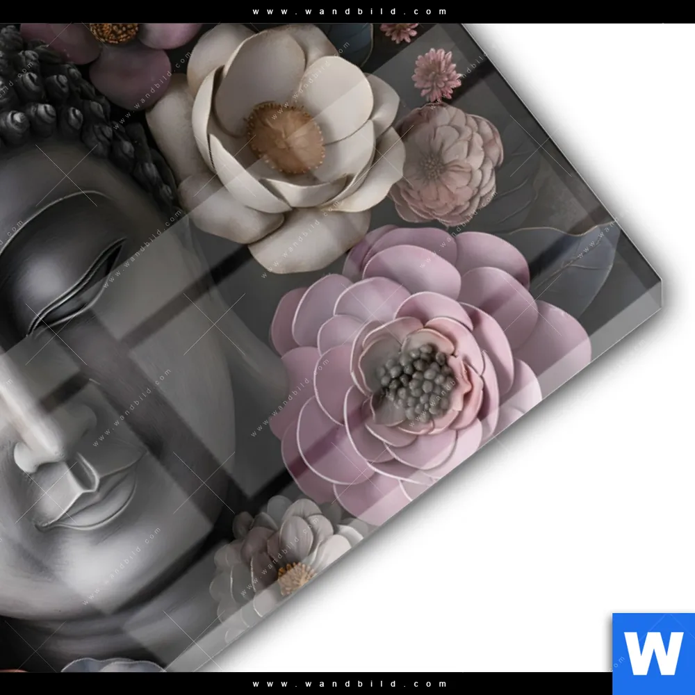 Acrylglasbild | Buddha-Kunst mit Pastellblüten | Querformat
