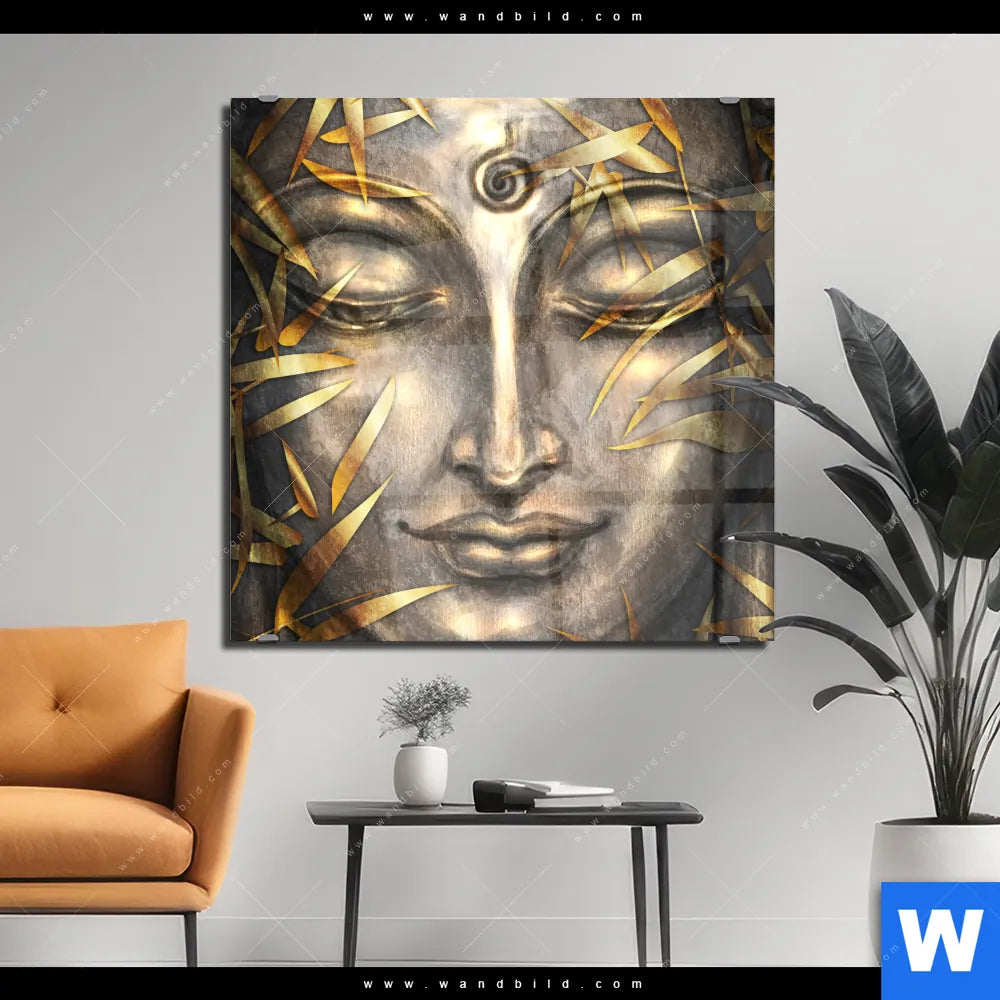 Acrylglasbild | Buddha Silber & Gold | Quadrat