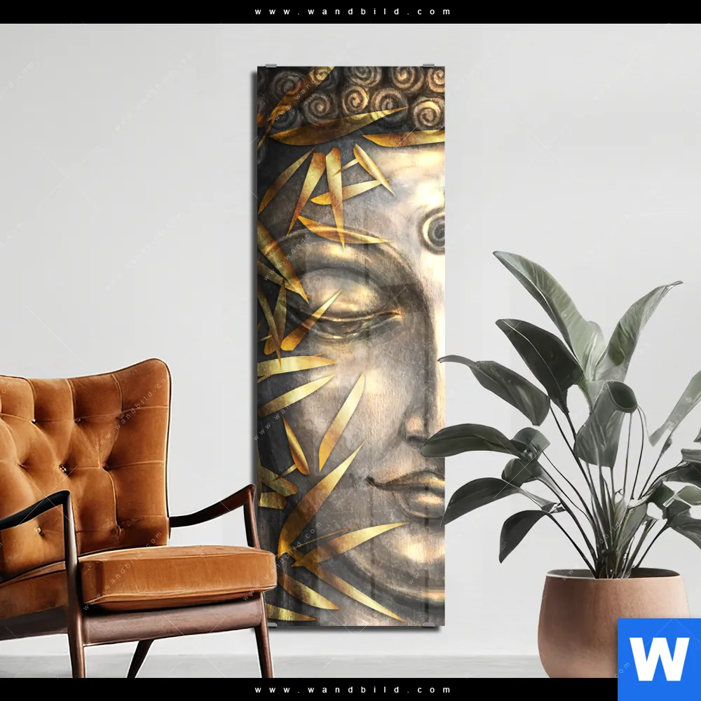 Acrylglasbild | Buddha Silber & Gold | Schmal