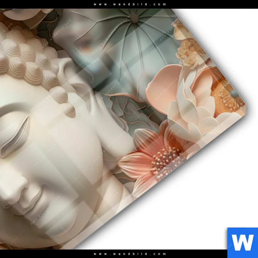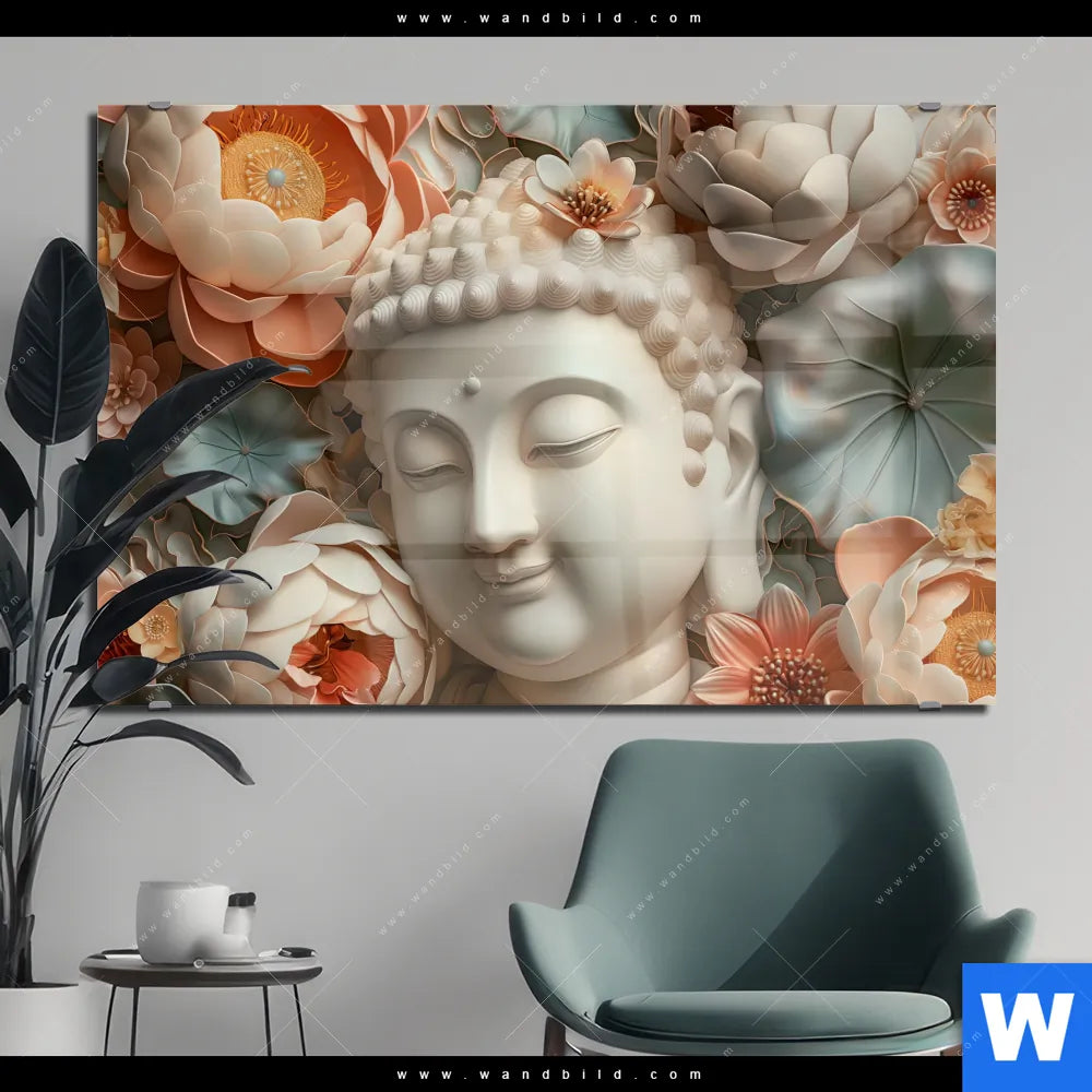 Buddha - Feng Shui, Blumen - Botanik Glasbild inkl. vormontiertem Rückrahmen