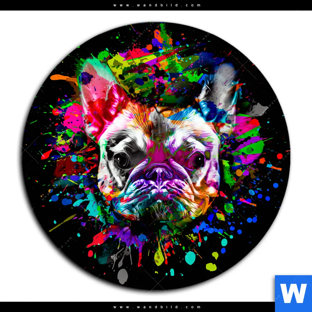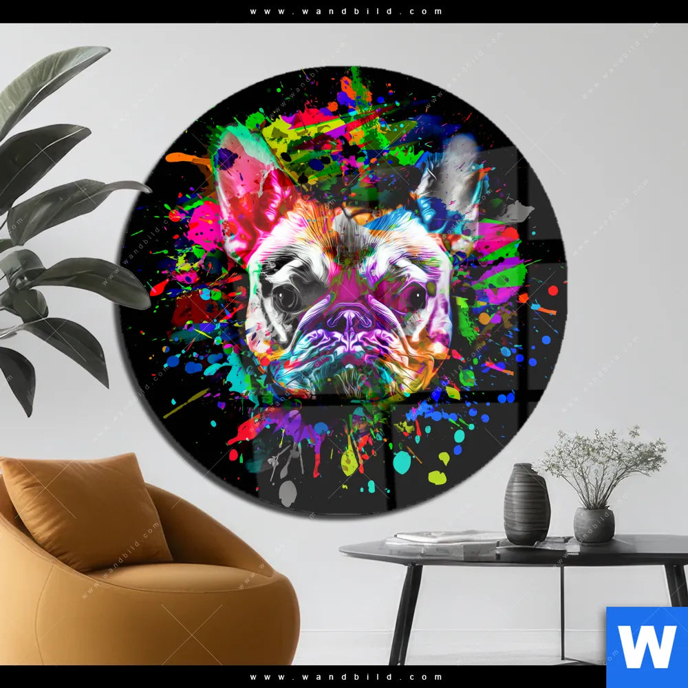 Acrylglasbild | Bunte Bulldogge Schwarz | Rund
