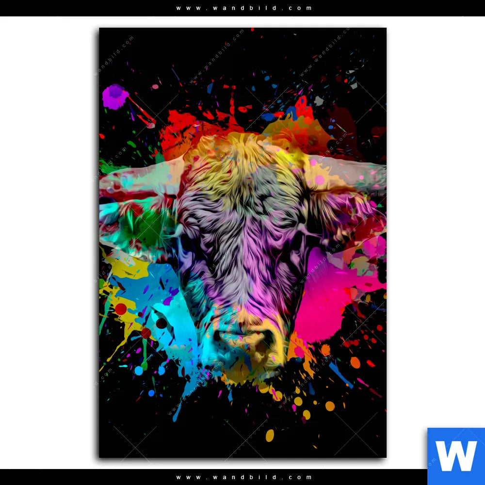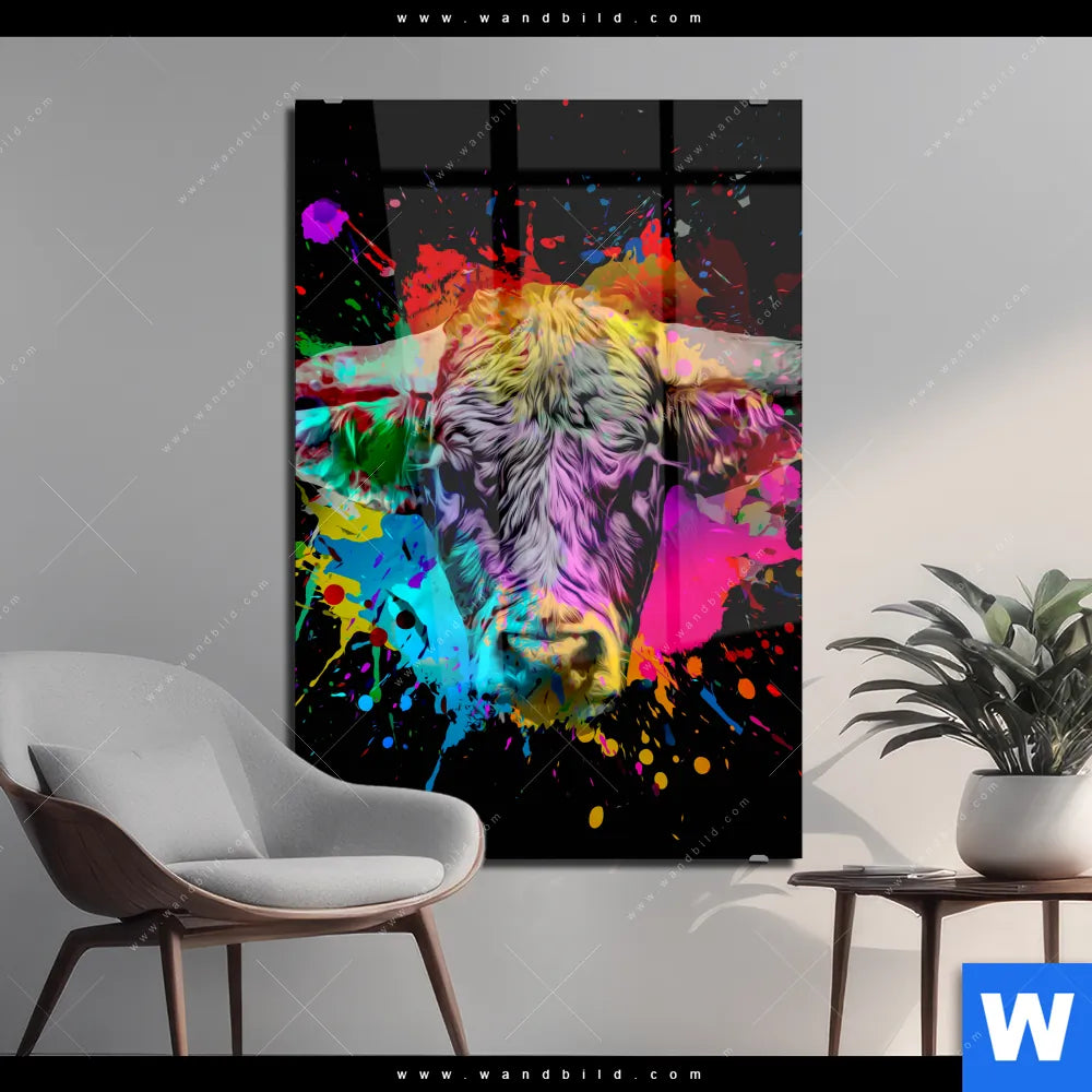 Acrylglasbild | Bunter Stier Schwarz | Hochformat