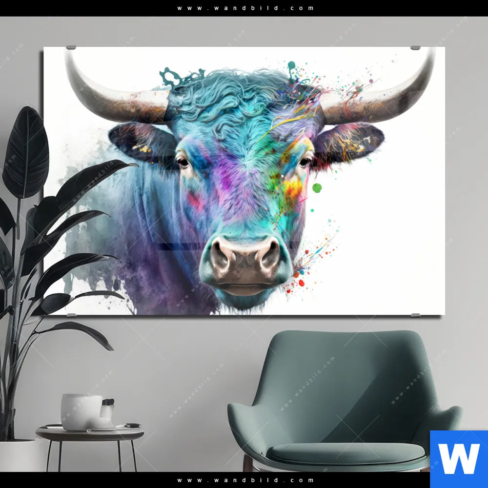 Acrylglasbild | Bunter Stierkopf | Querformat
