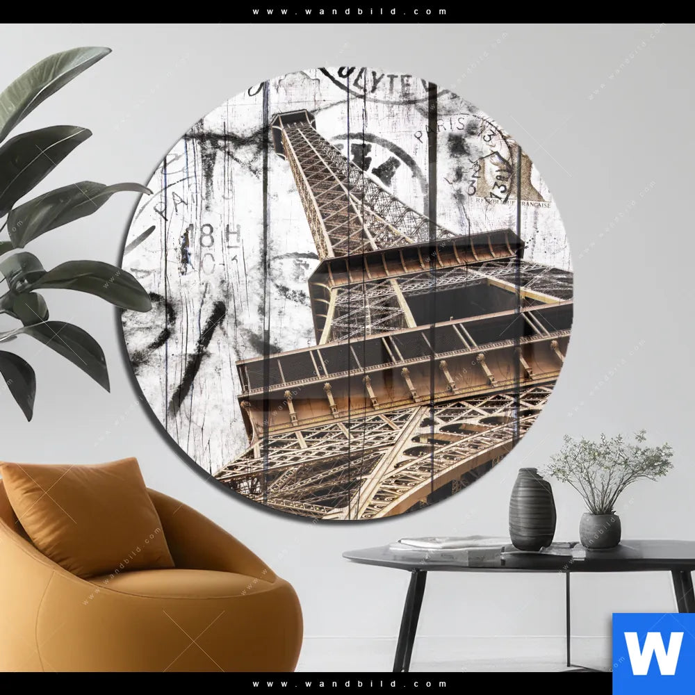 Acrylglasbild | Eifelturm Shabby Stil | Rund