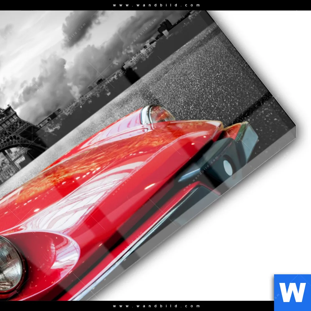 Acrylglasbild | Eiffelturm & Rotes Auto | Querformat