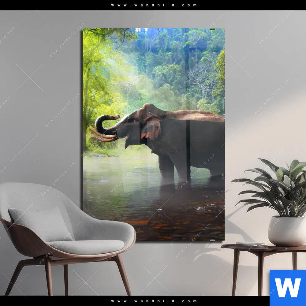 Acrylglasbild | Elefant im Wasser | Hochformat