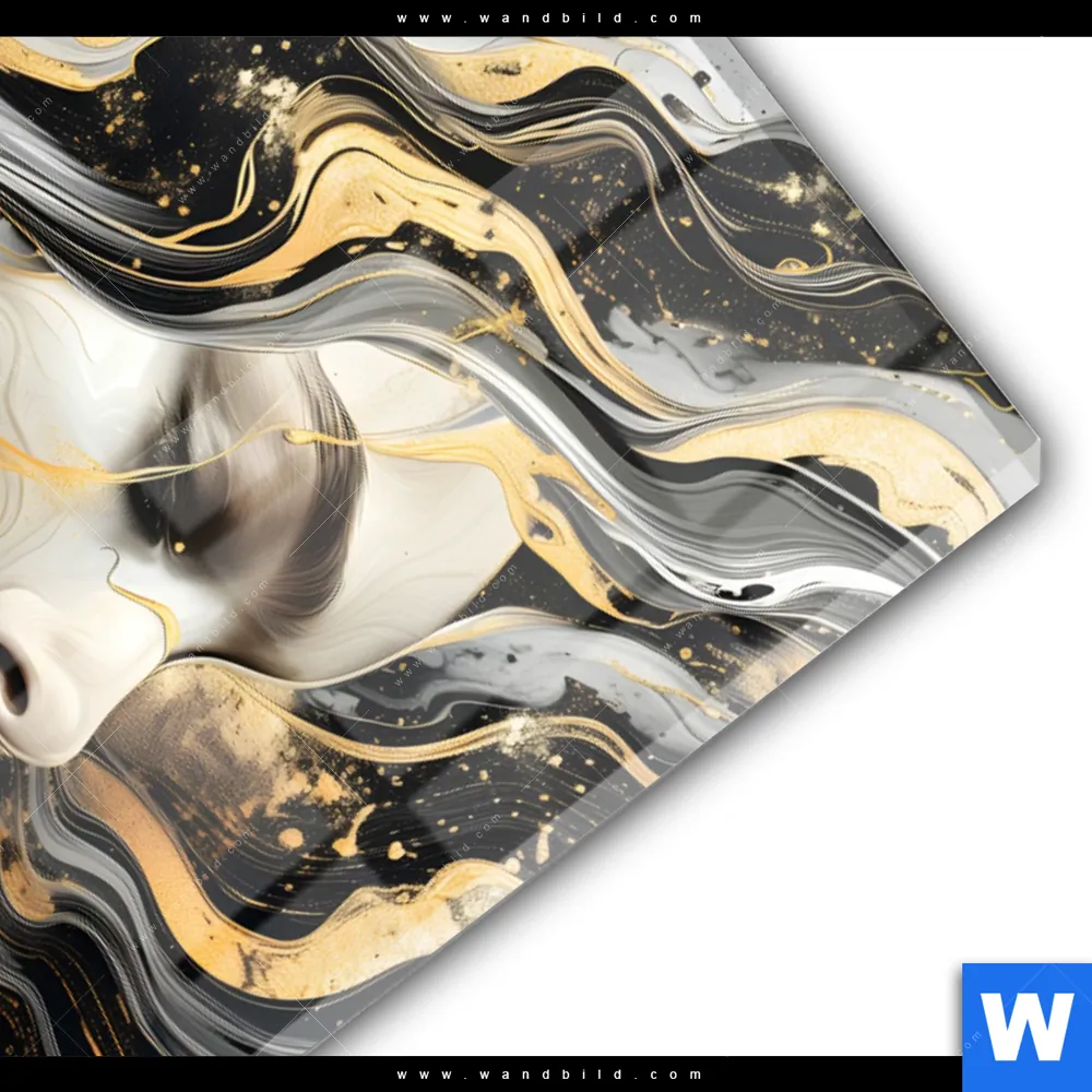Acrylglasbild | Elegantes gold-schwarzes Porträt | Hochformat