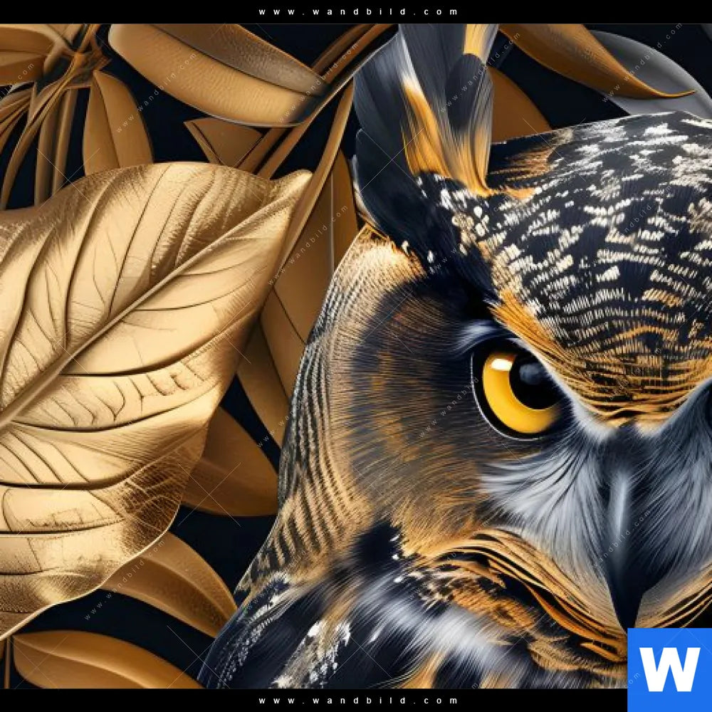 Acrylglasbild | Eule und goldene Blätter | Querformat