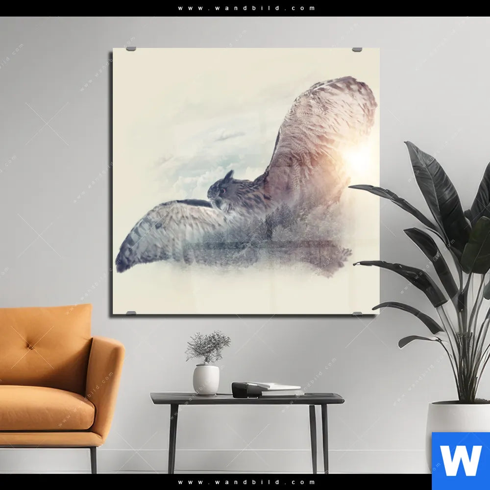 Acrylglasbild | Eule & Wald No.2 | Quadrat