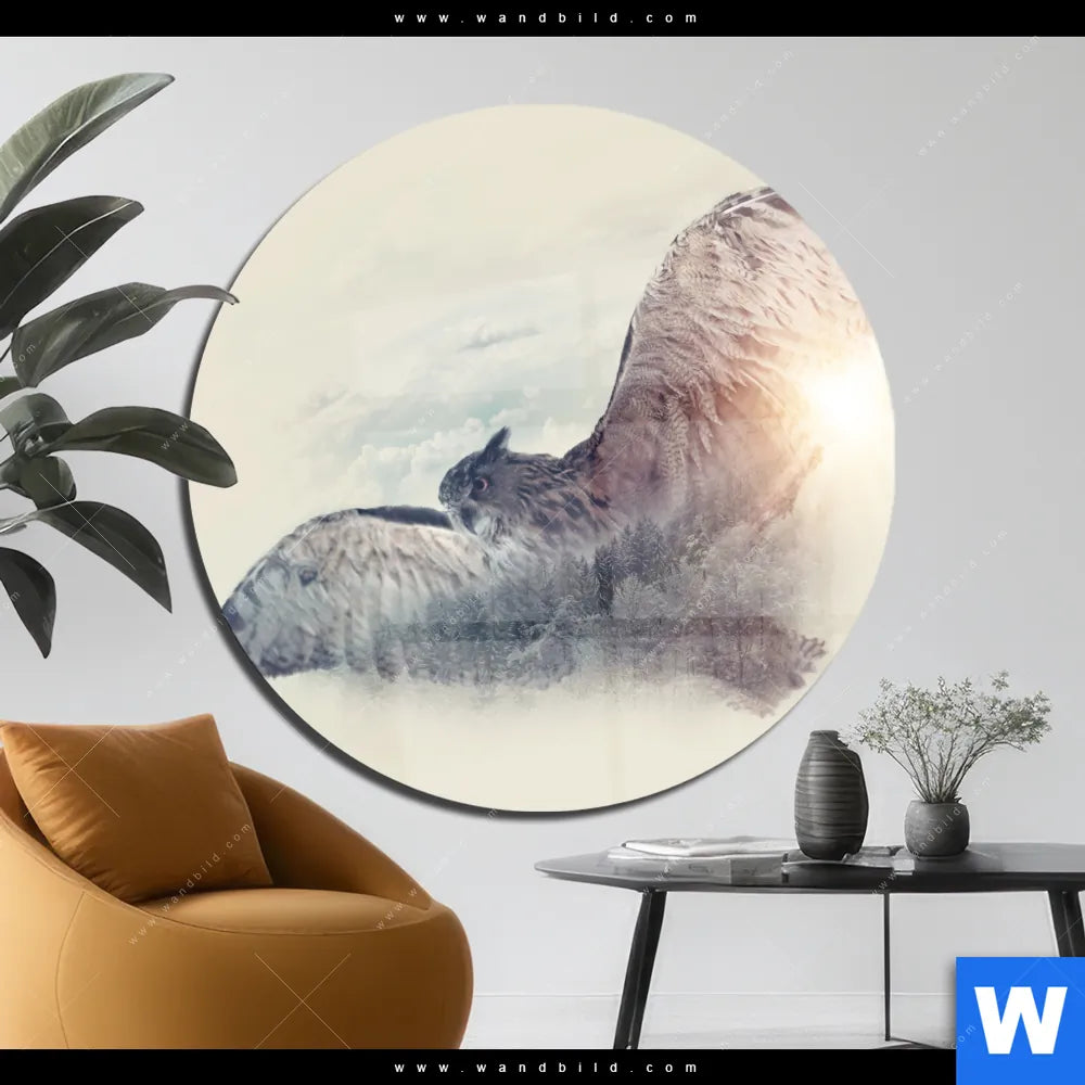Acrylglasbild | Eule & Wald No.2 | Rund
