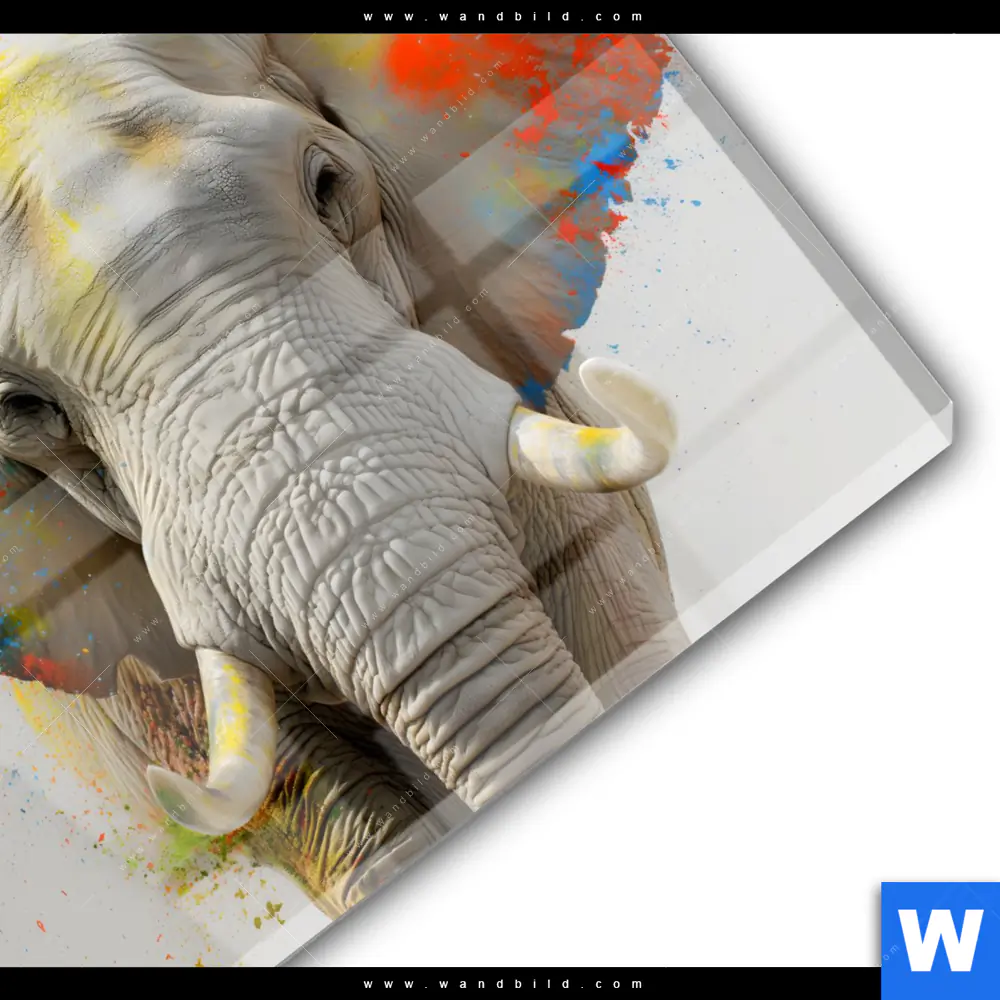 Acrylglasbild | Farbenexplosion mit Elefant | Rund
