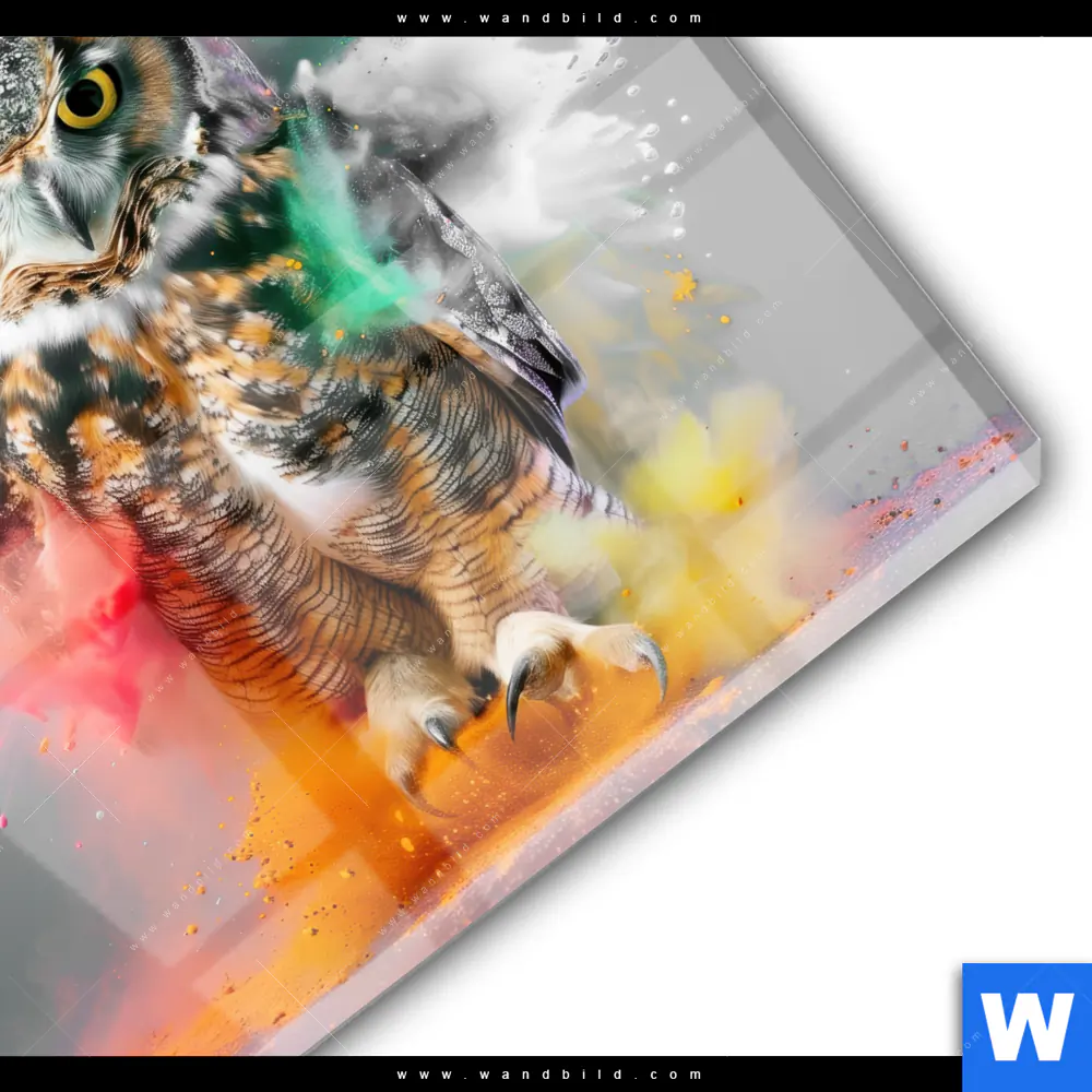 Acrylglasbild | Farbenexplosion mit Eule | Quadrat