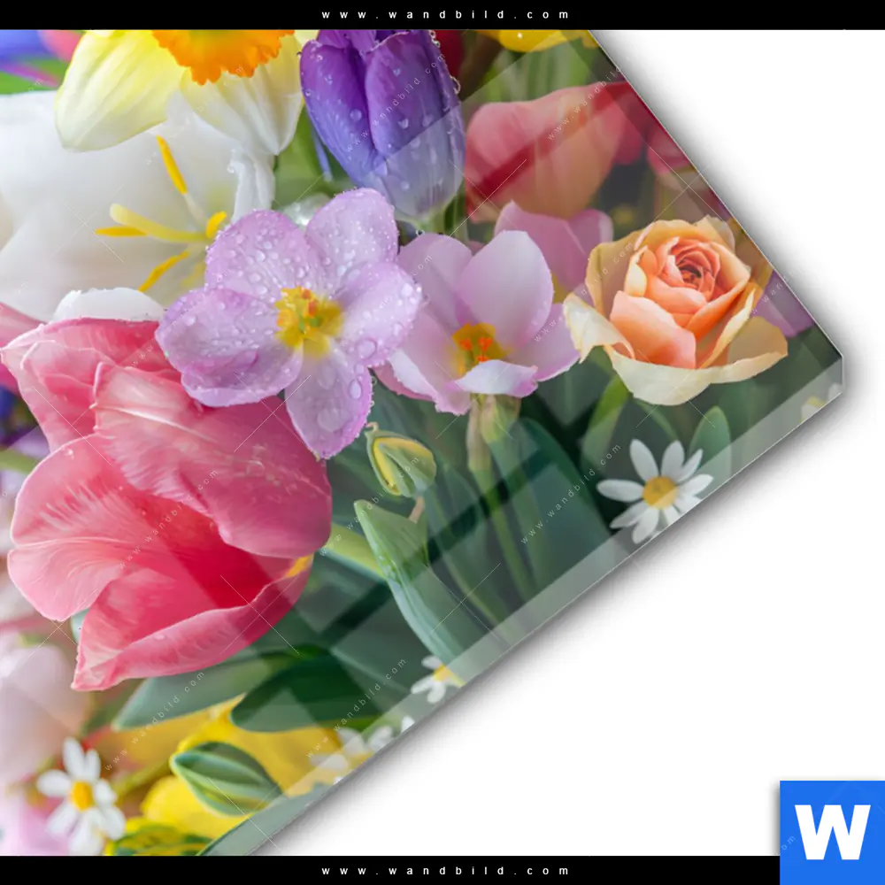Acrylglasbild | Farbenfrohe Frühlingsblüten | Querformat