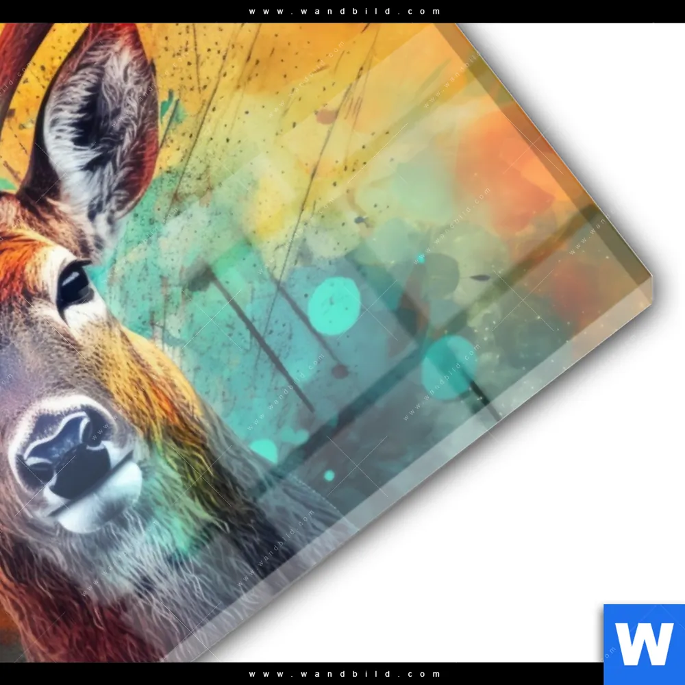 Acrylglasbild | Farbenfrohes Hirschporträt | Querformat
