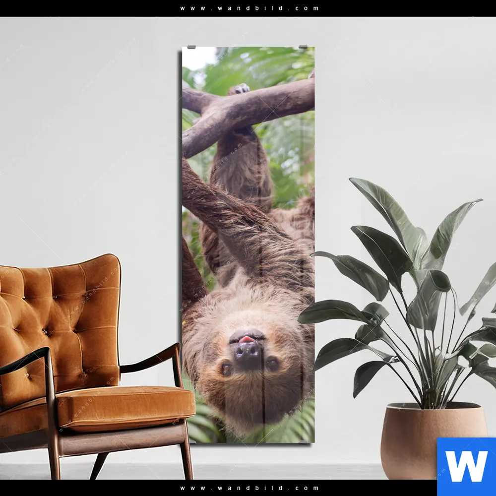 Acrylglasbild | Faultier streckt Zunge raus | Schmal