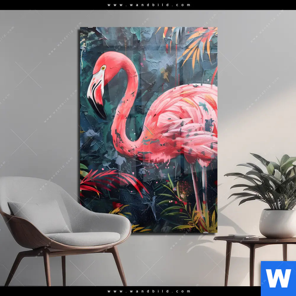Acrylglasbild | Flamingo - Dschungel Eleganz | Hochformat