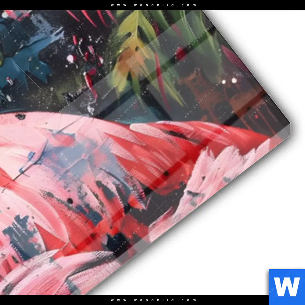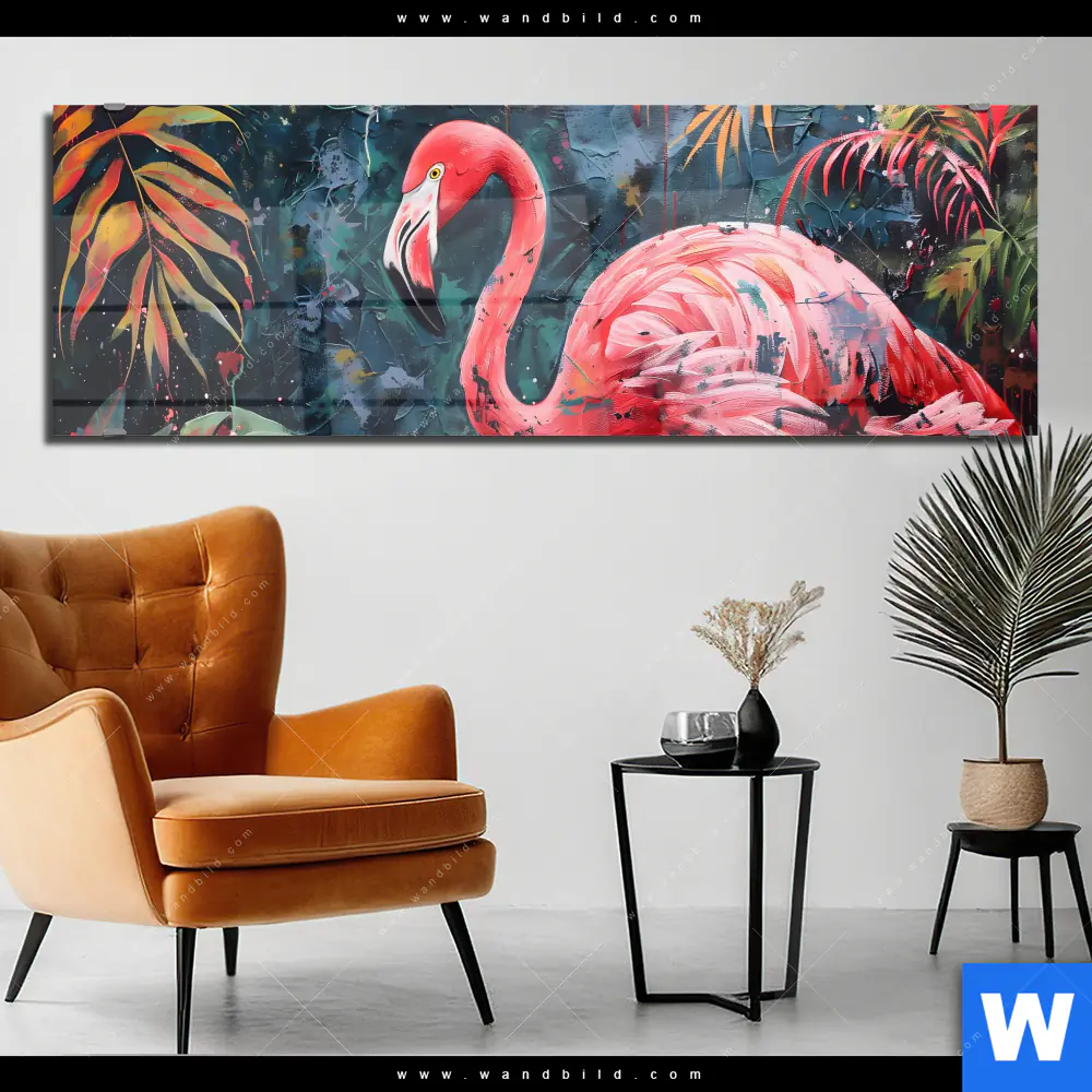 Acrylglasbild | Flamingo - Dschungel Eleganz | Panorama