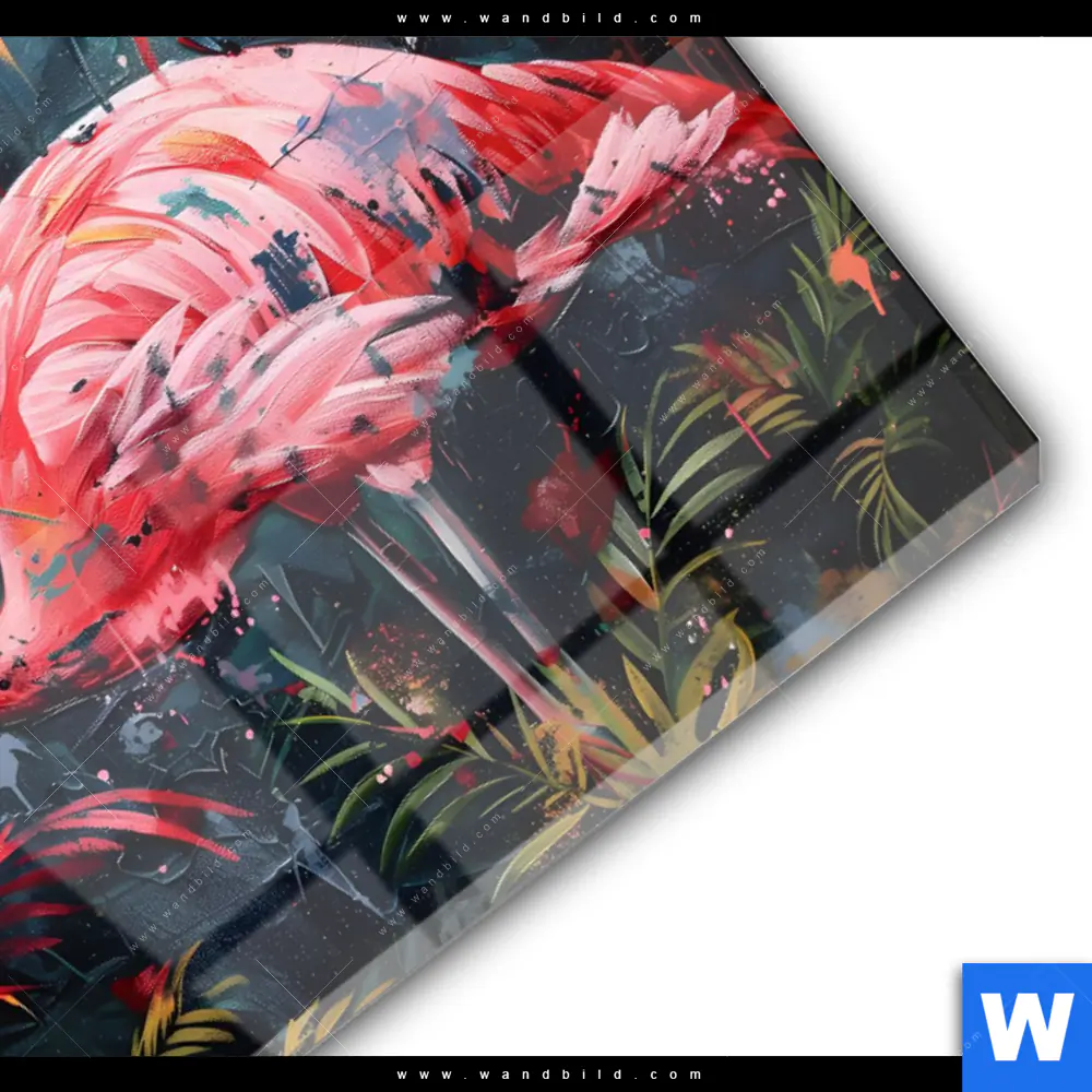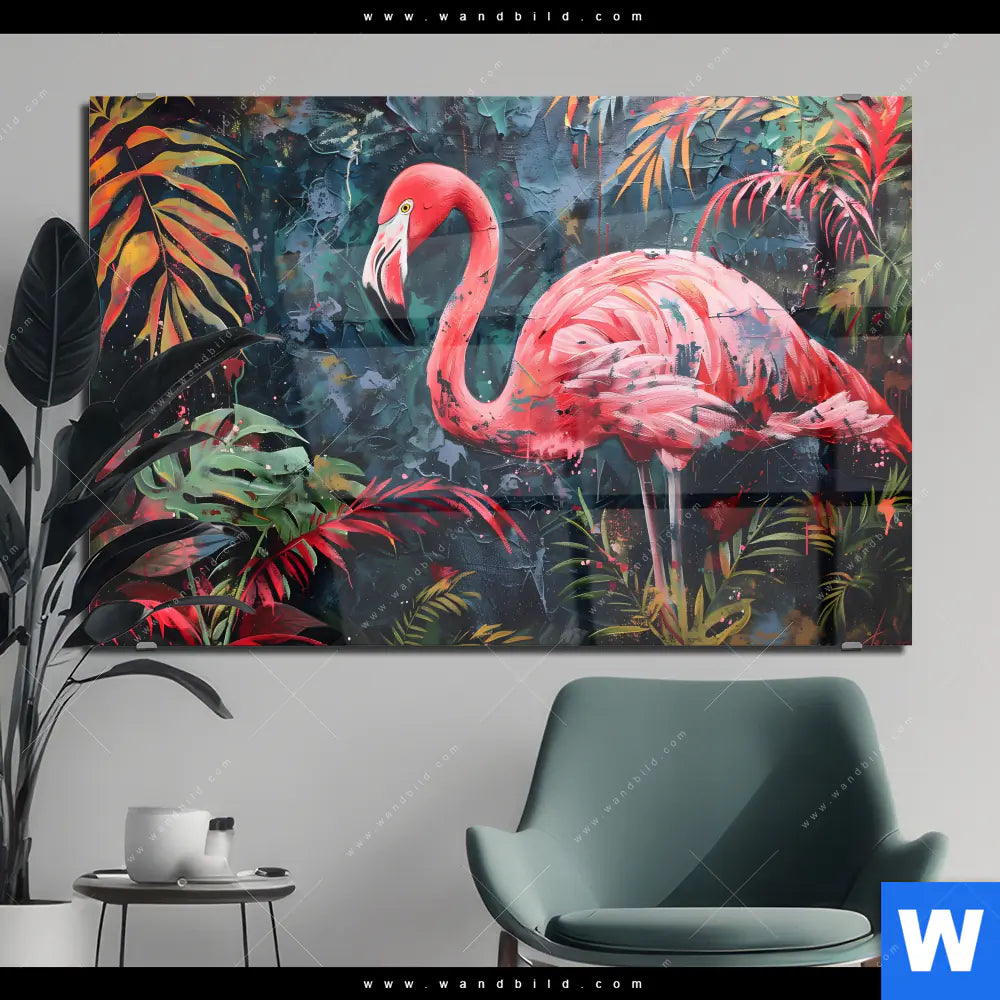 Acrylglasbild | Flamingo - Dschungel Eleganz | Querformat