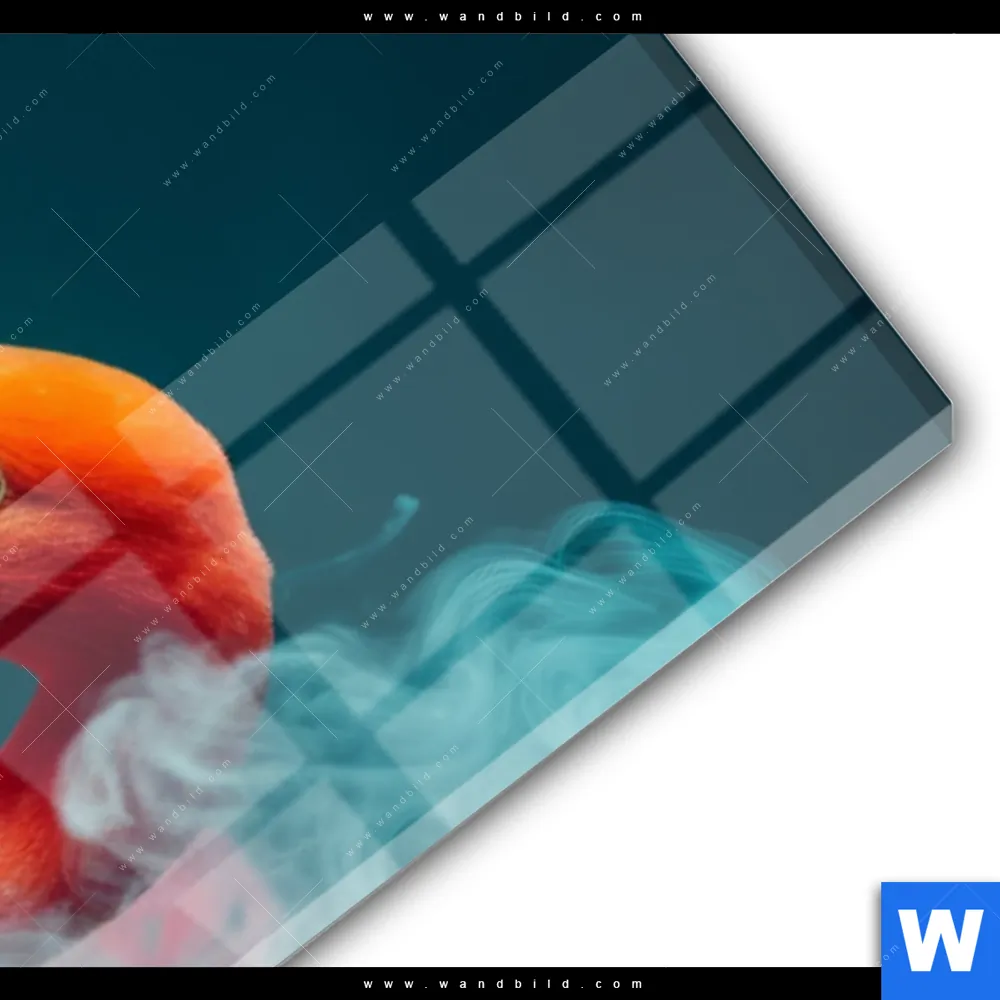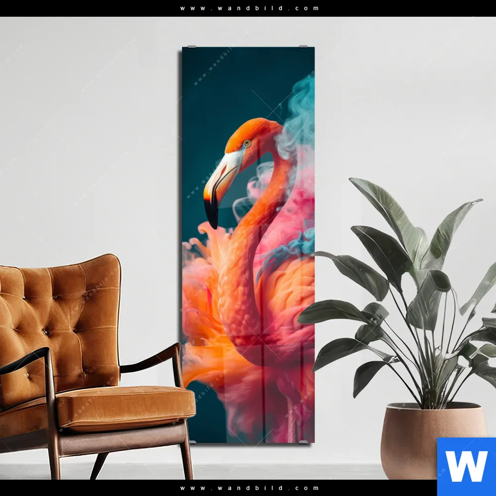 Acrylglasbild | Flamingo in bunter Rauchwolke | Schmal
