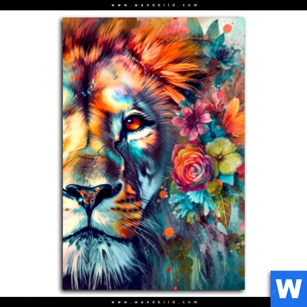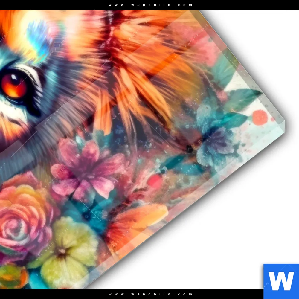 Acrylglasbild | Floraler Löwe | Hochformat