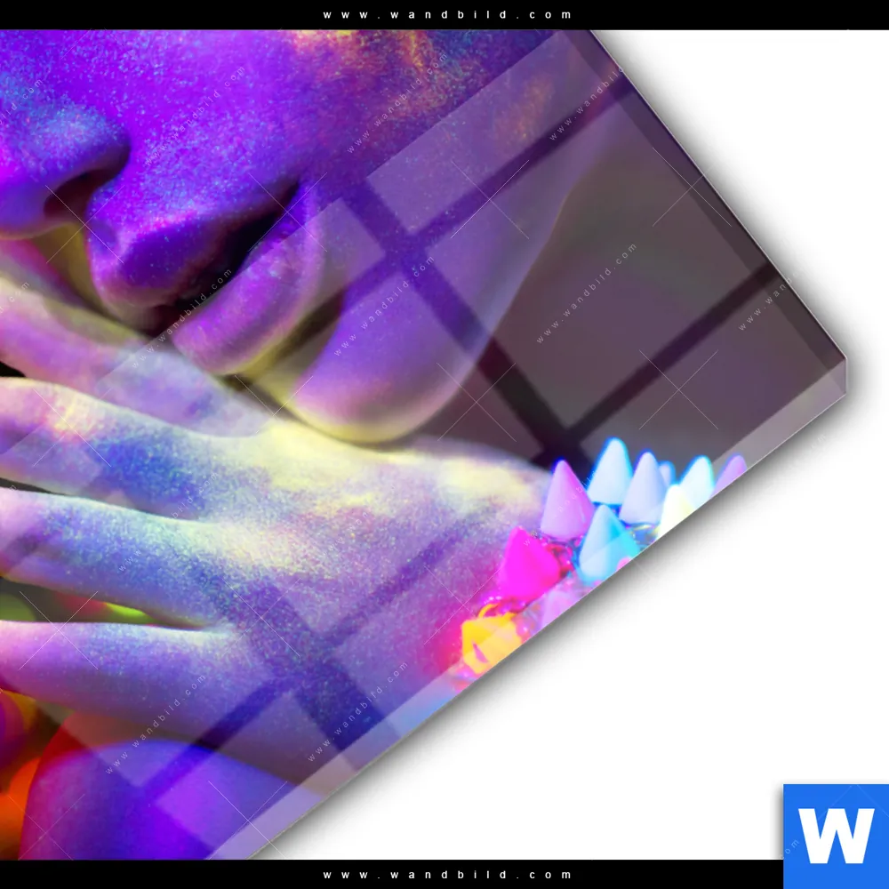 Acrylglasbild | Frau im Neonlicht | Quadrat