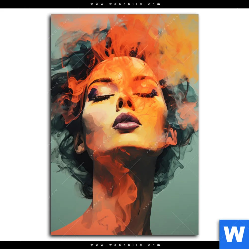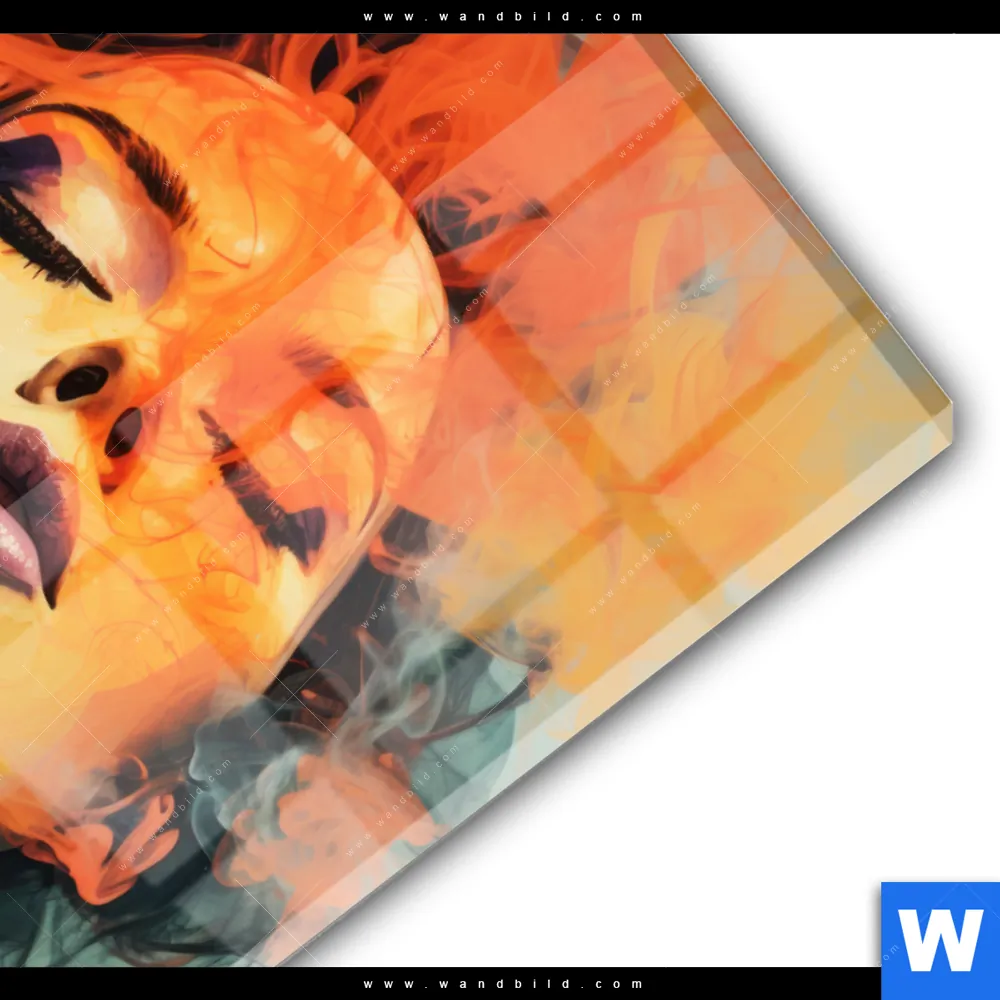 Acrylglasbild | Frau mit buntem Rauch | Hochformat