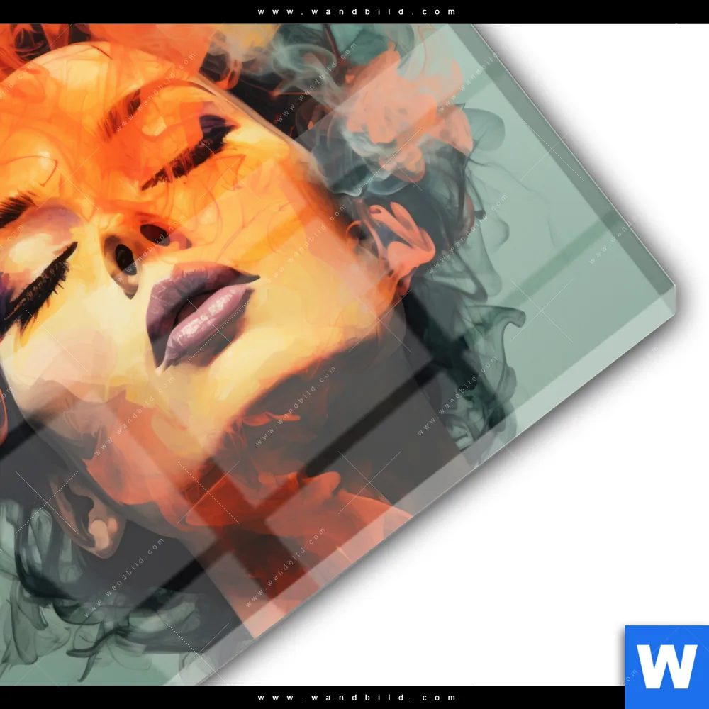 Acrylglasbild | Frau mit buntem Rauch | Quadrat