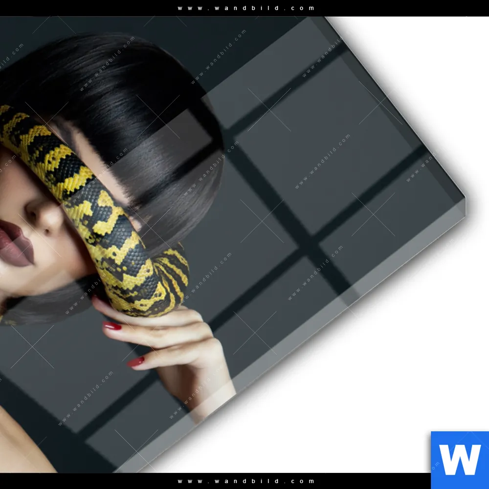 Acrylglasbild | Frau mit gelber Schlange | Hochformat