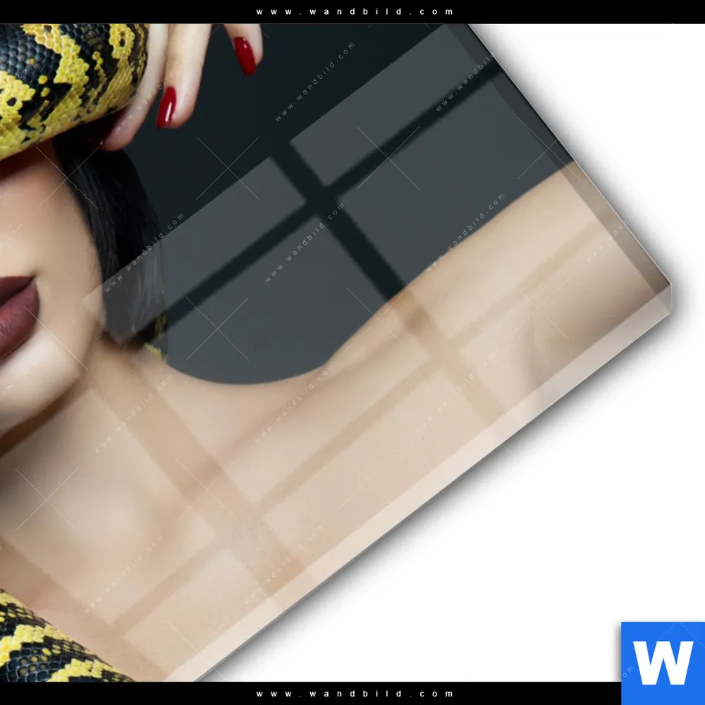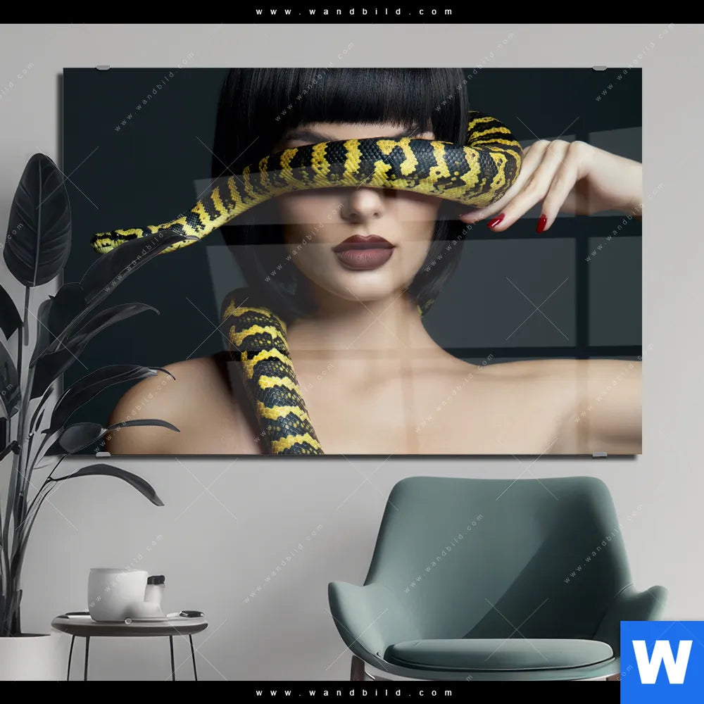 Acrylglasbild | Frau mit gelber Schlange | Querformat