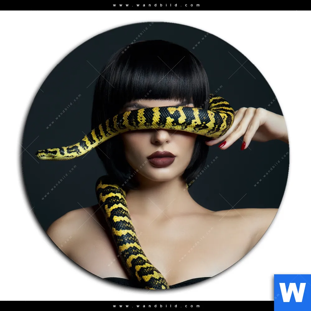 Acrylglasbild | Frau mit gelber Schlange | Rund