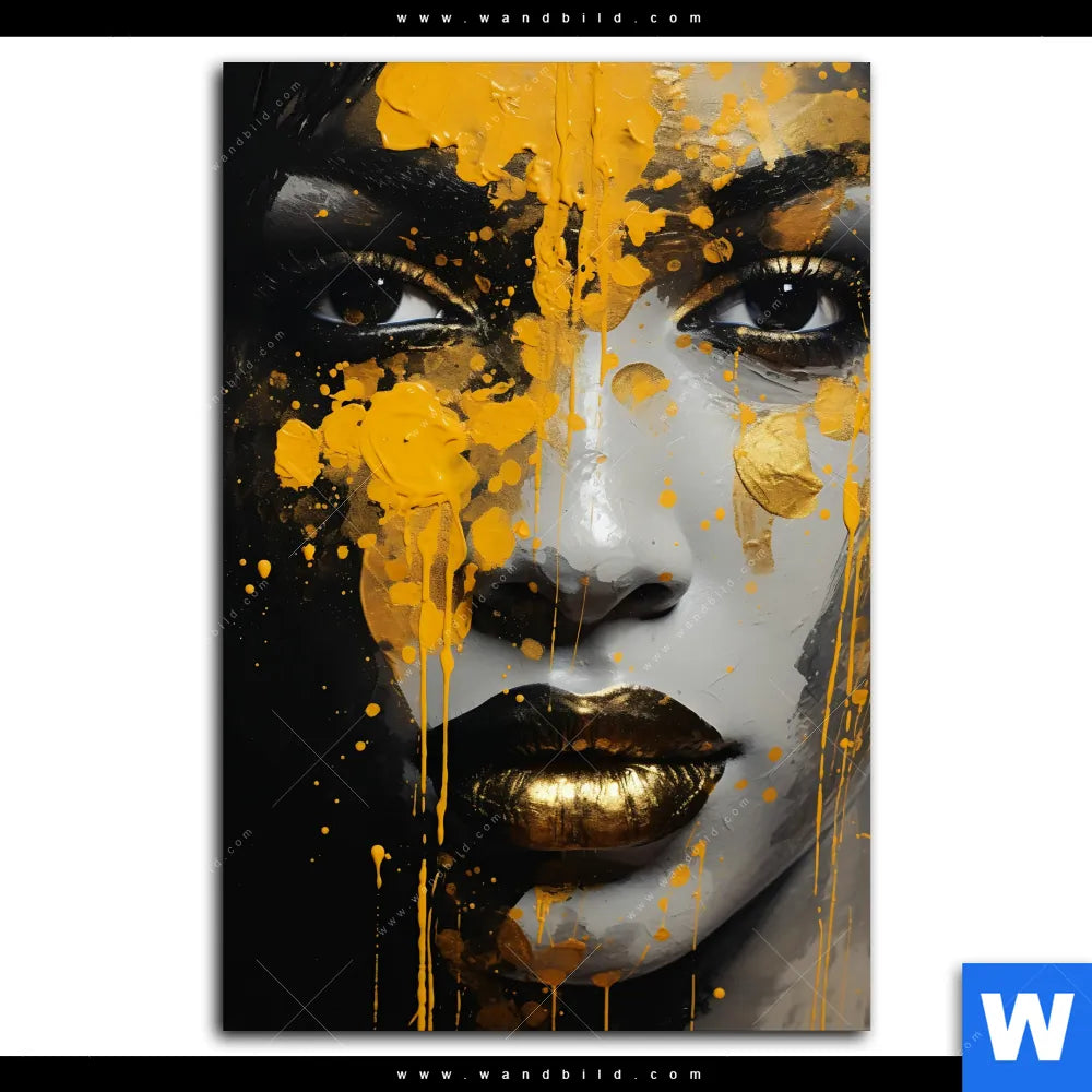 Acrylglasbild | Frau mit Goldfarbe | Hochformat