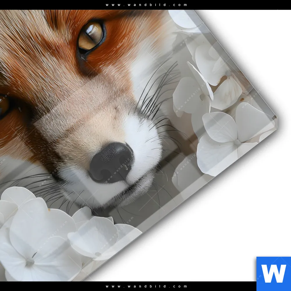Acrylglasbild | Friedlicher Fuchs und Blumen | Rund