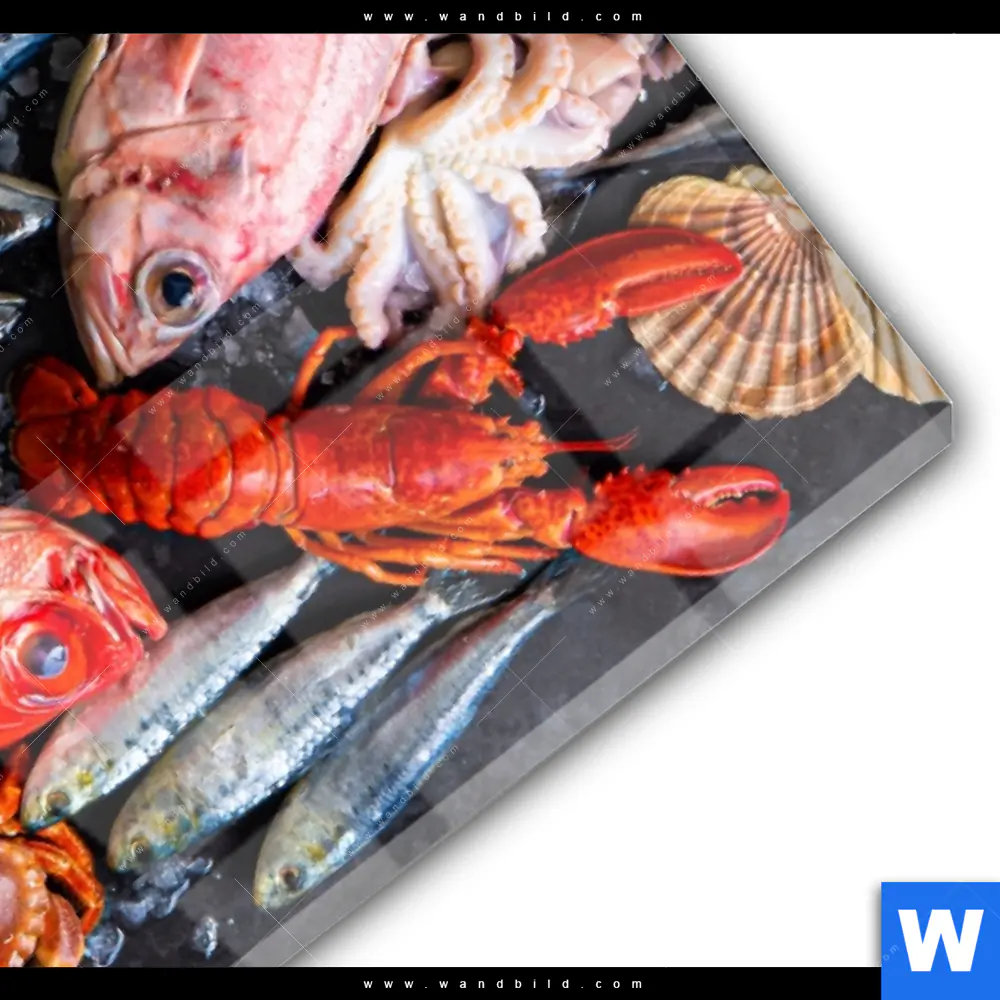 Acrylglasbild | Frischer Fisch und Meeresfrüchte | Hochformat